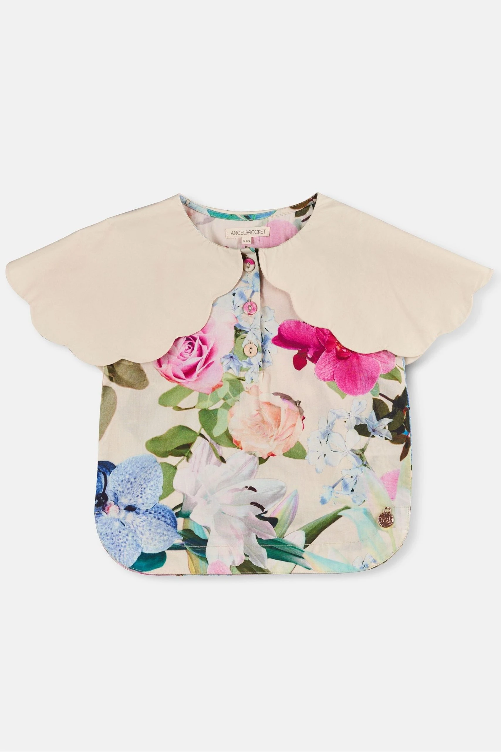 Angel & Rocket Cream Darcy Cape Collar Woven Print Top