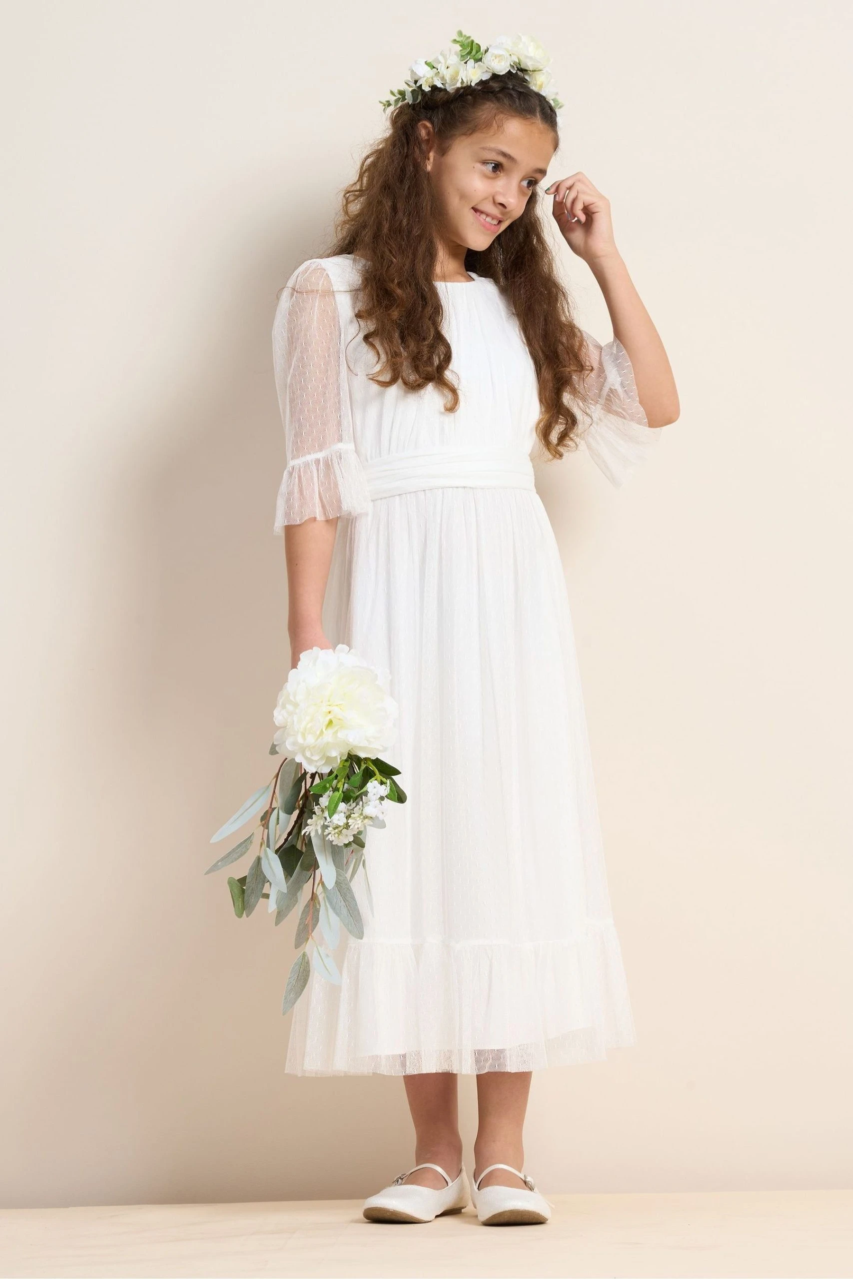 Angel & Rocket Elise White Dot Mesh Boho Maxi Dress