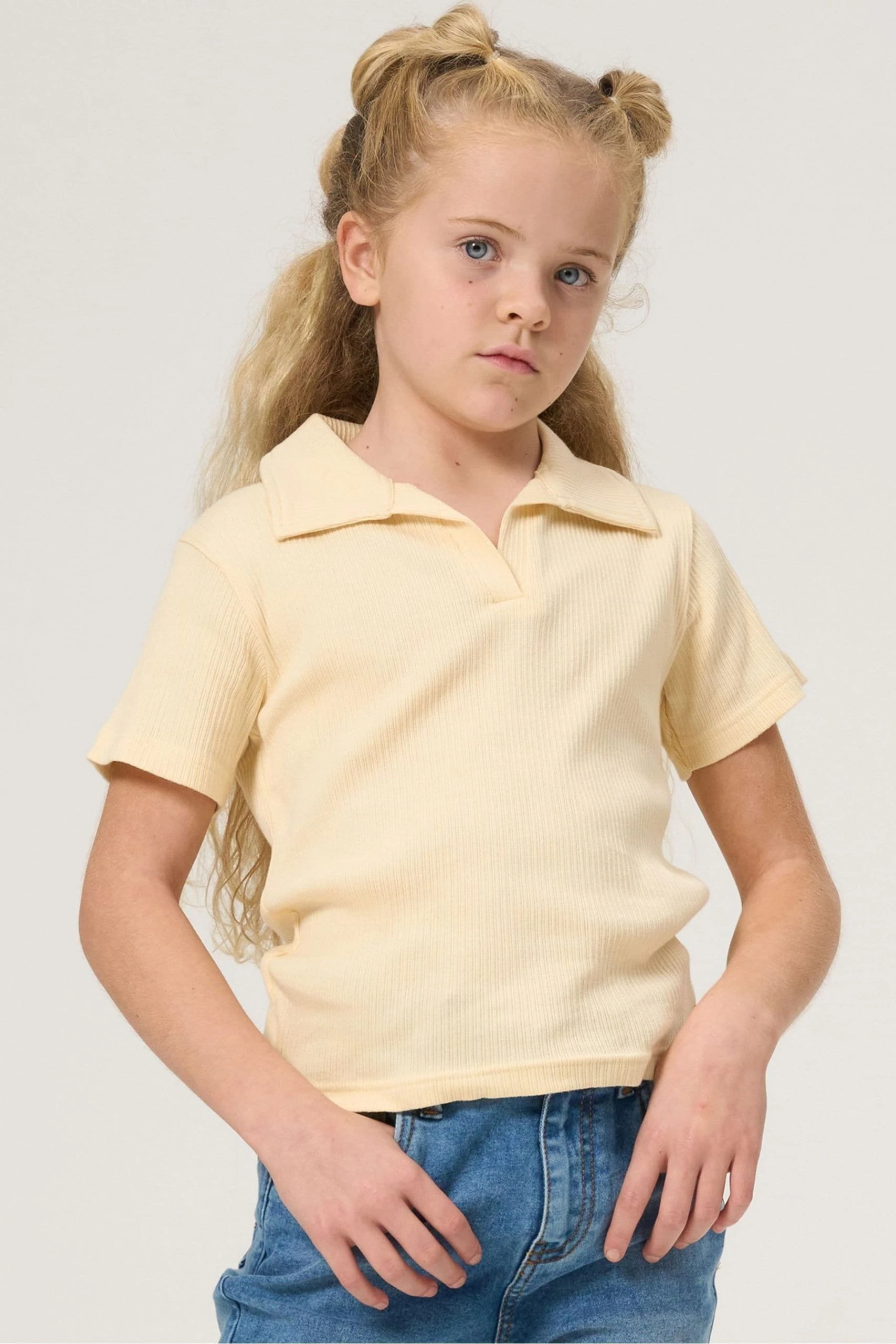 Angel & Rocket Yellow Taylor Skinny Rib Collar Top