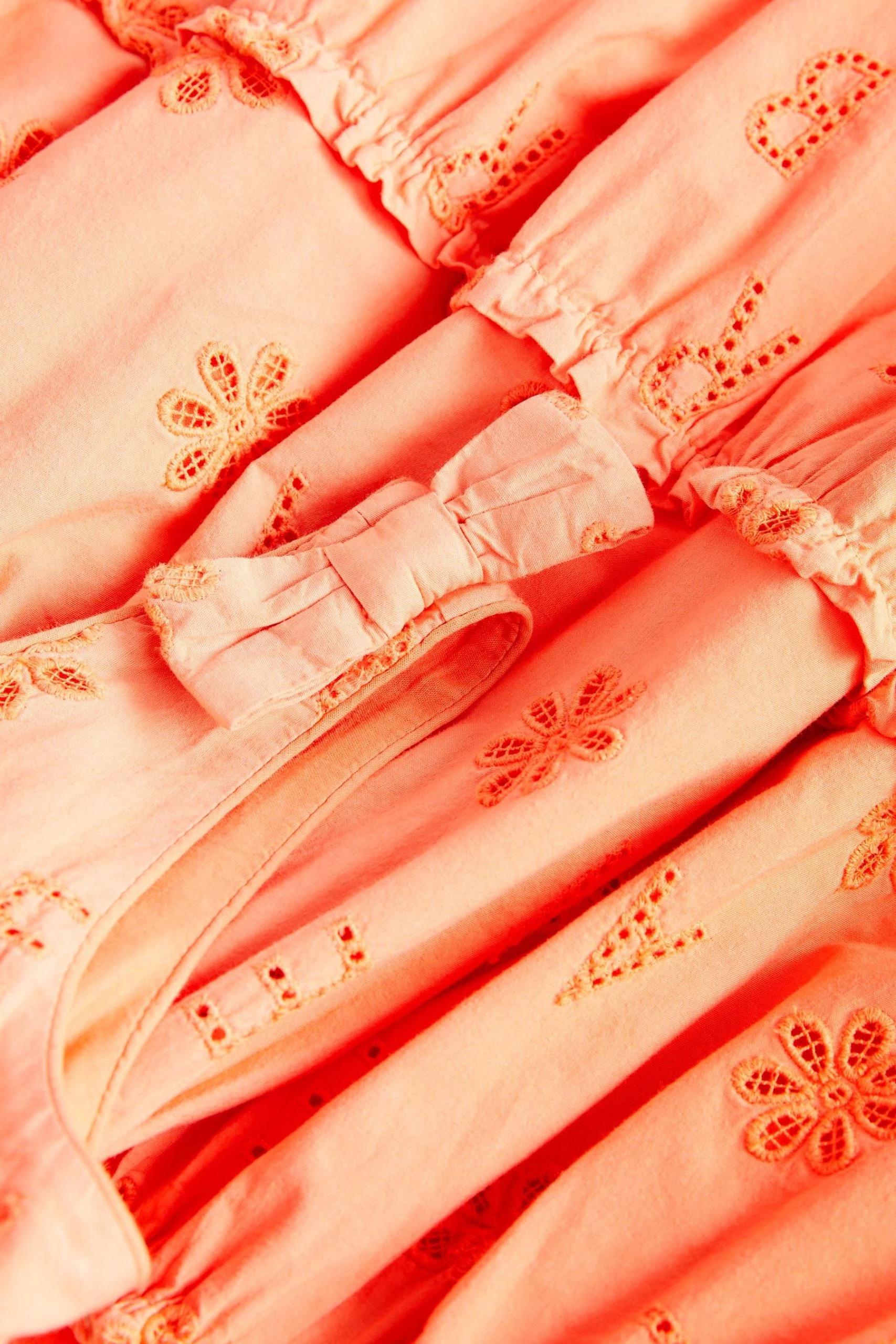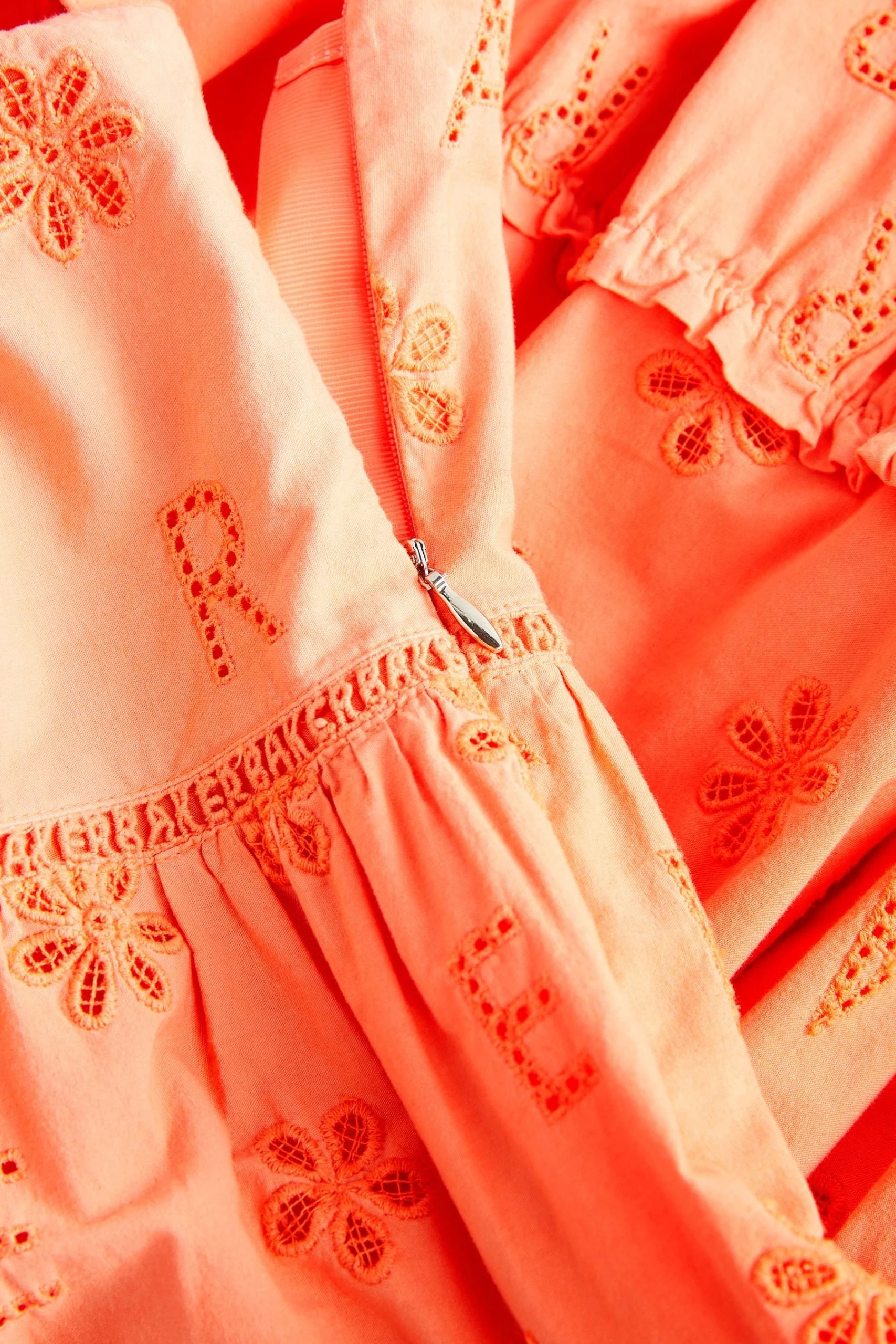 Covered in a charming broderie print, this zingy orange dress from Baker by Ted Baker will be a delightful addition to her summer wardrobe. Boasting a light and floaty silhouette made from soft cotton, this pretty piece also features bow details on the shoulders and a tiered skirt that will be ideal for twirling. Team it with a delicate pair of sandals for a classic summer look.