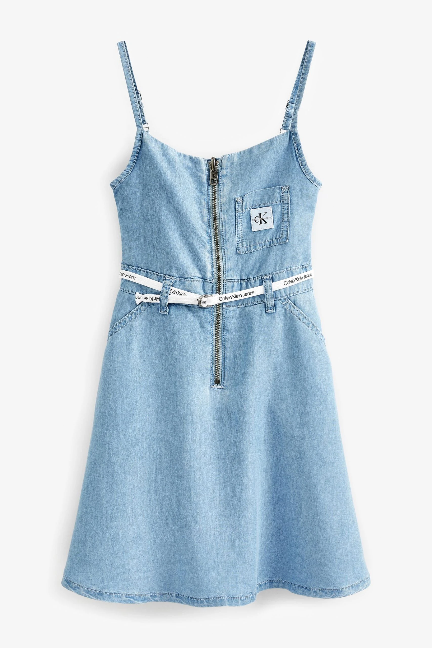 Calvin Klein Jeans Girls Blue Strappy Denim Midi Dress