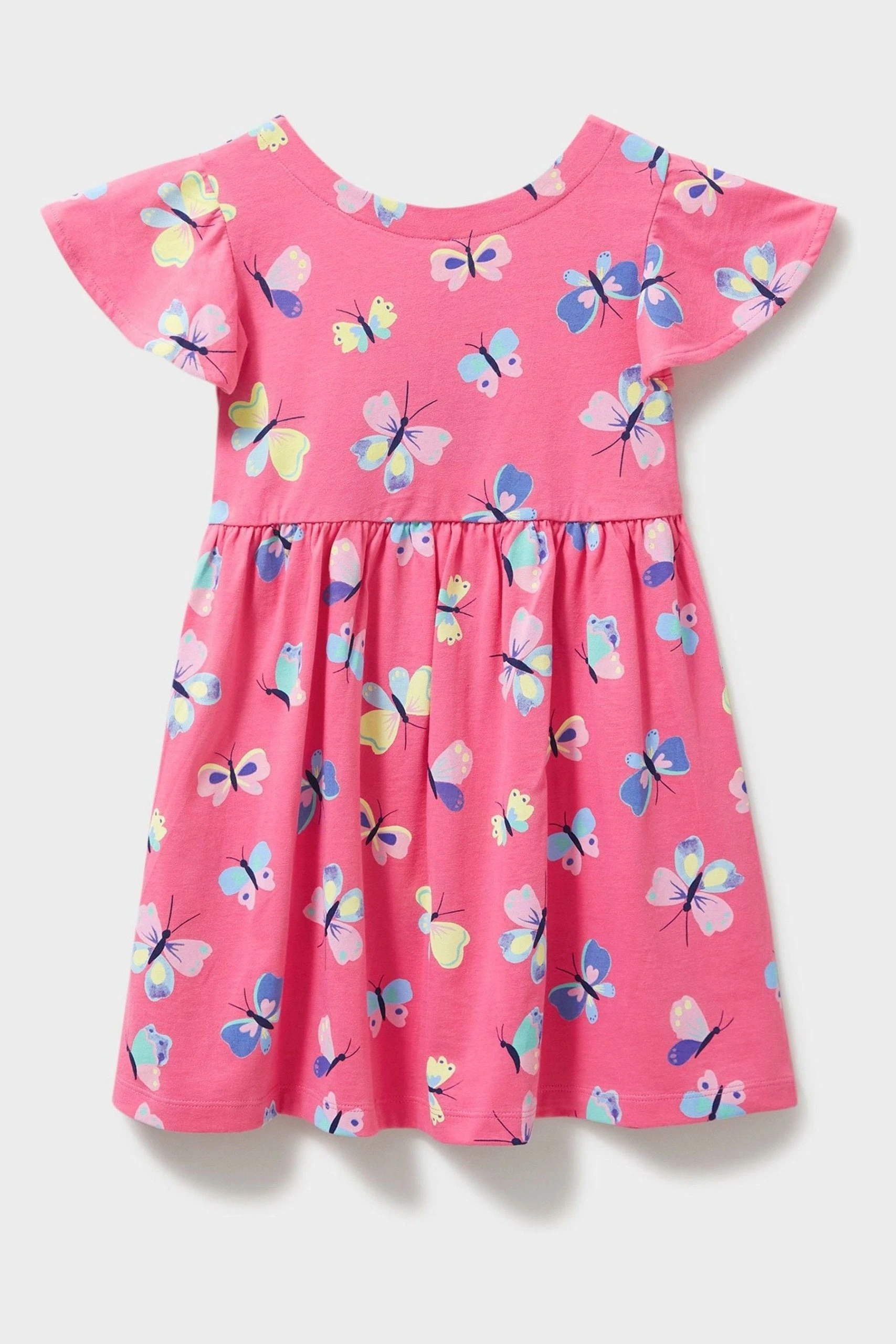 A pink dress with an all-over butterfly print. Cute and comfy, we love the fluttery cap sleeves and twirl factor of this style. It’s perfect for playdates and shopping sprees alike, just add trainers. MISSING FABRIC COMPS. Crossed oars embroidered on the hem. Machine wash.