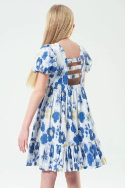 Angel & Rocket Blue Puff Sleeve Print Dress
