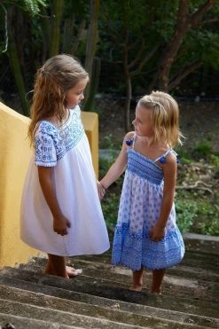 Sunuva Navy And White Peruvian Short Sleeve Dress