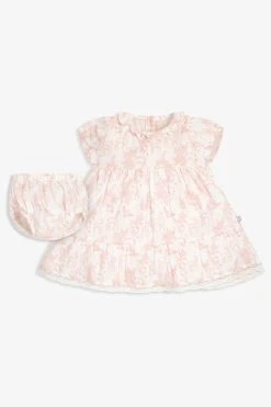 The Little Tailor Pink Woodland Baby Dress And Bloomer Set