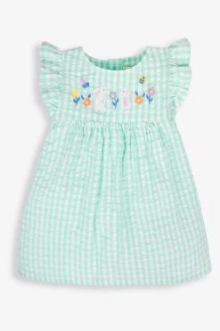Jojo Maman Bebe JoJo Maman Bébé 3-Piece Gingham Bunny Embroidered Dress With Knickers & Floppy Hat Set