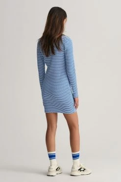 GANT Blue Striped Ribbed Long Sleeve Polo Dress