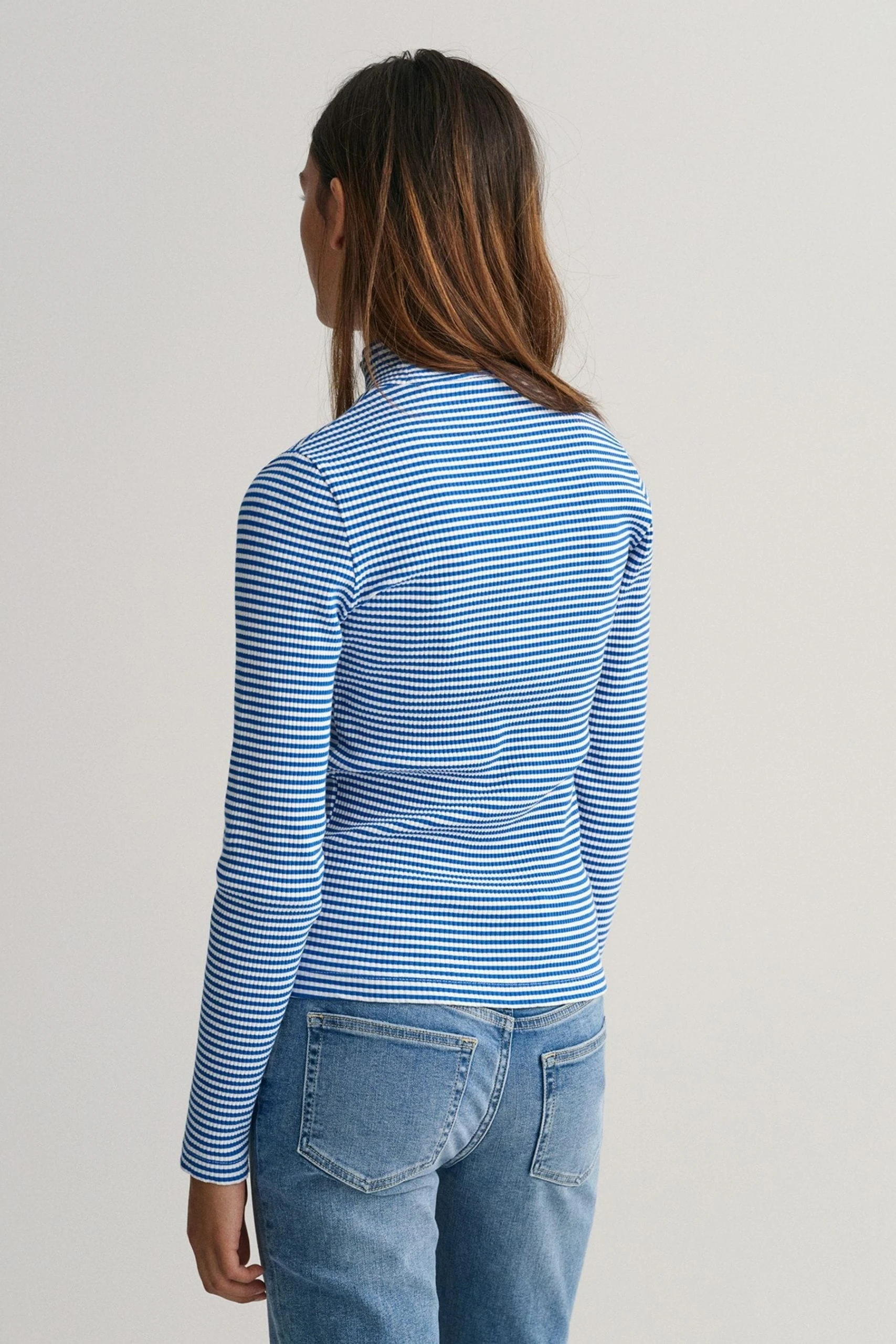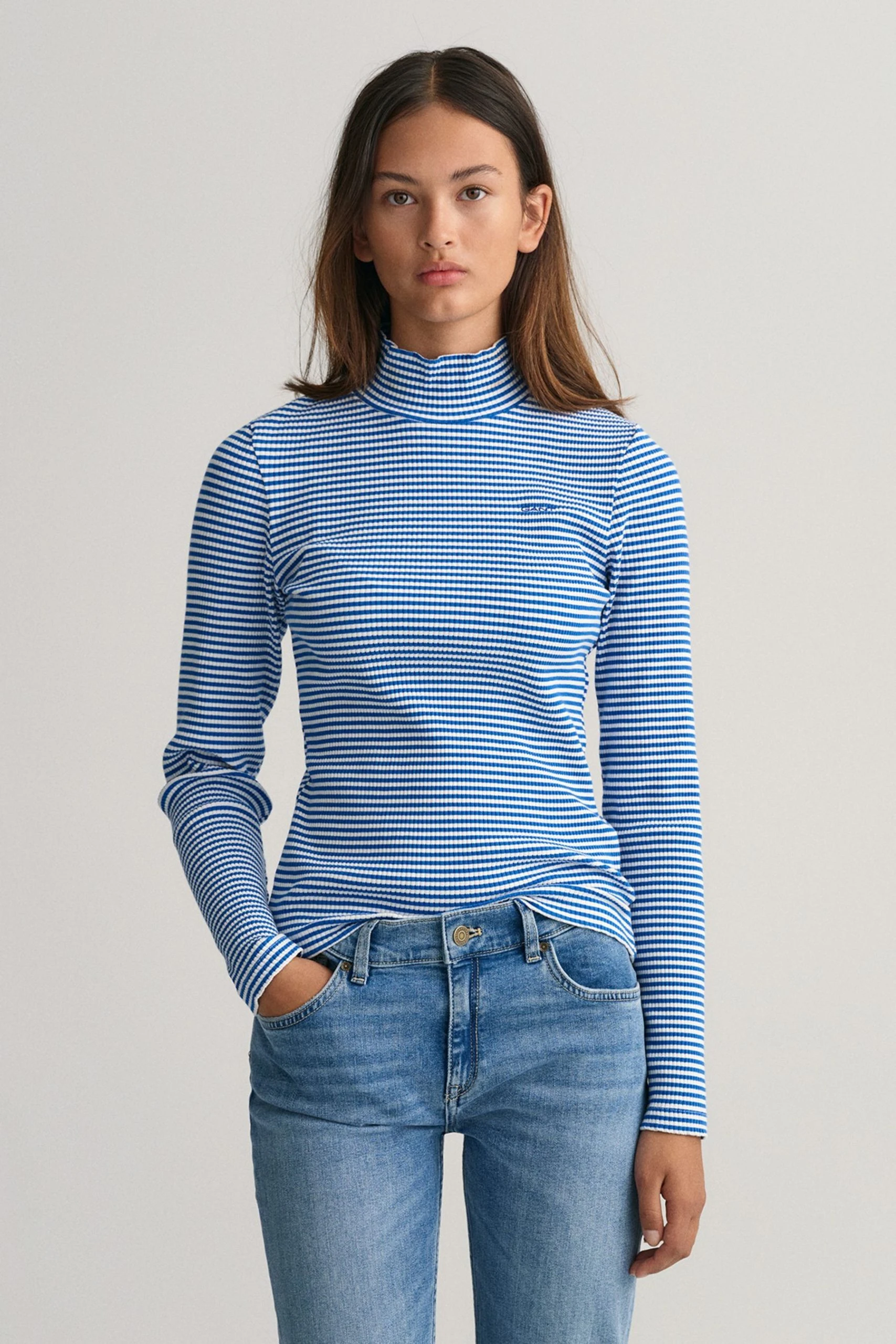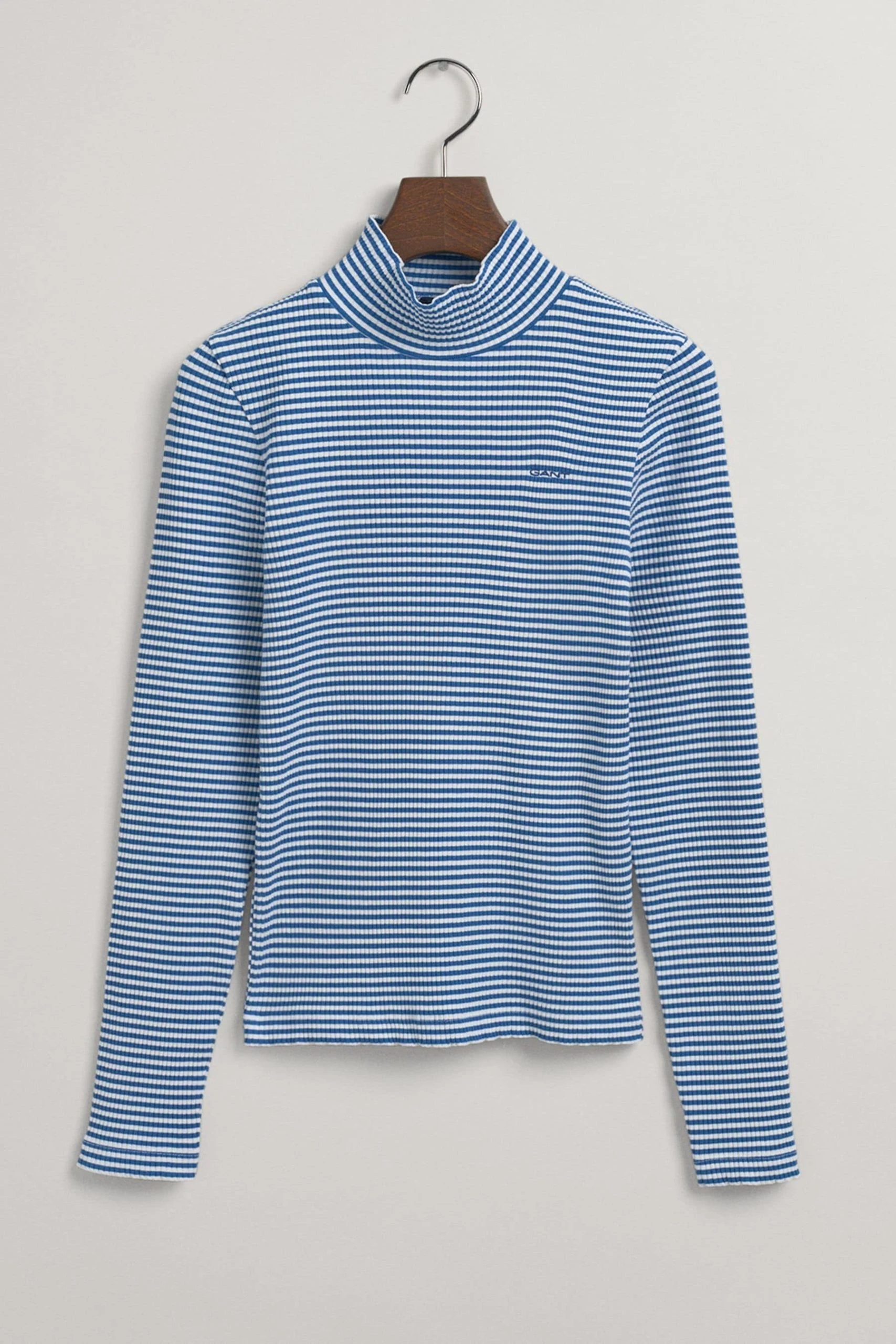 This fitted long-sleeved top in a striped rib is the perfect layering piece. It features a mock neck and our iconic Archive Shield embroidered at the chest. Mock neck. GANT logo embroidery at chest. Model is 5 ft 6.9 in and is wearing size 170.