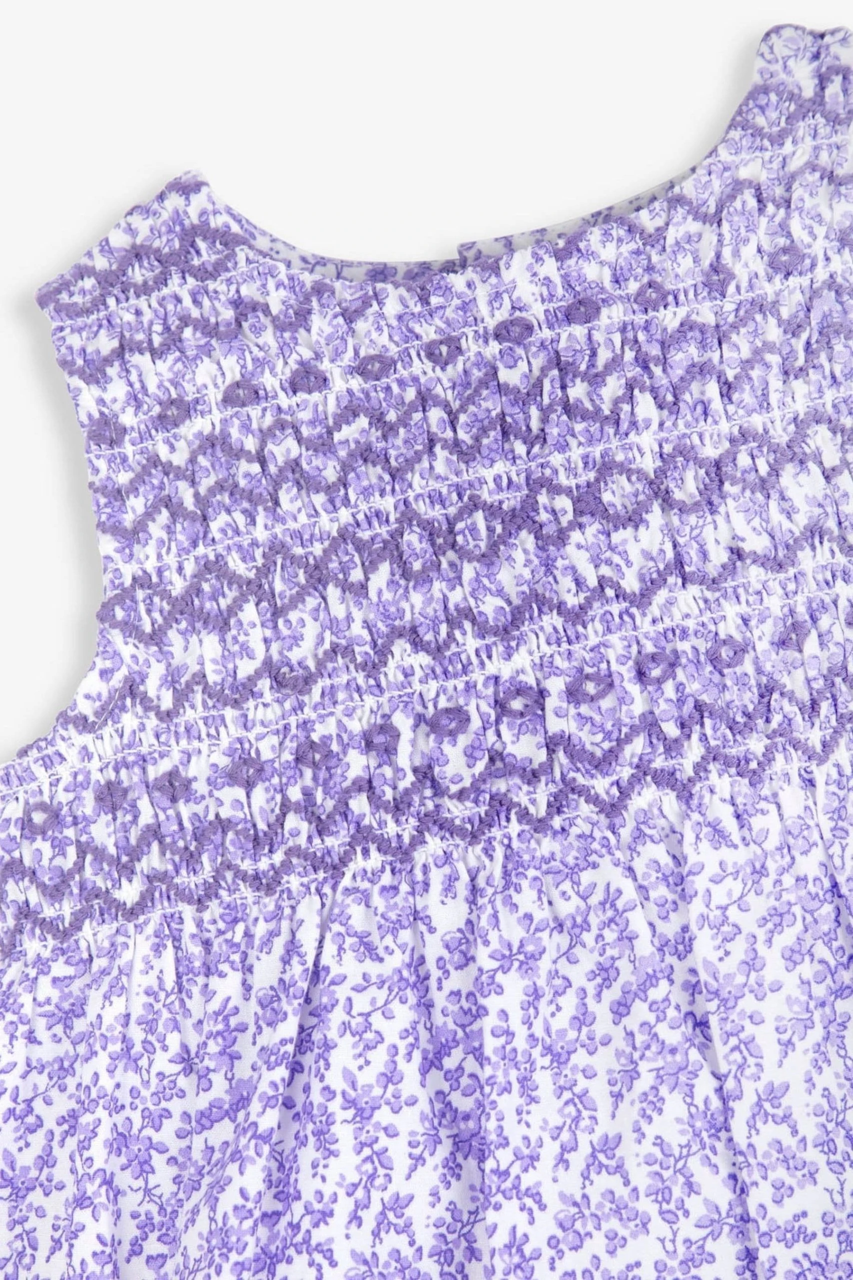 This gorgeous smocked dress will ensure your little one looks the part on every special occasion this season. Available in comfy, soft cotton, it features smocking to the chest with a beautiful all-over floral print. It’s finished with an underskirt that’s perfect for twirling in! All-over floral print. Smocking to the chest. Button back opening for easy dressing. Cotton underskirt. Round neck. Sizes up to and including. 2-3 years come with matching knickers to use as a nappy cover.