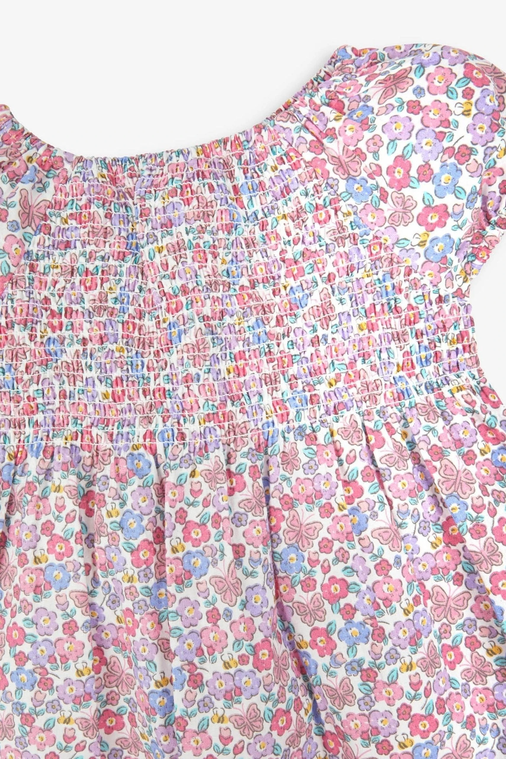 Featuring lightweight cotton and a beautiful floral butterfly print, our Cream Butterfly Ditsy Print Smocked Dress is the perfect spring and summer piece. Smocking to the chest adds a classic touch so you can style it for any occasion. ??All-over butterfly print. Smocking to the chest. Elasticated cuffs and neckline. Gathering to empire seam.