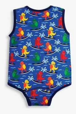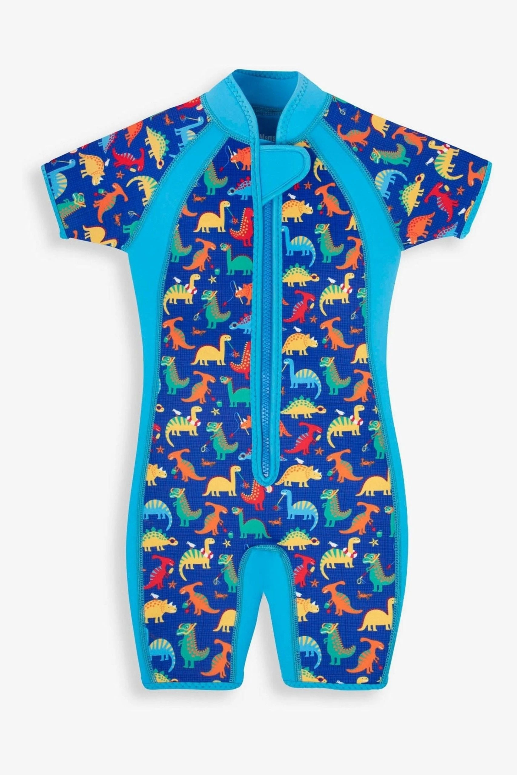 Our Dino Print Wetsuit is perfect for swimming in cold pools and less warm beaches because it provides a flexible, comfortable fit and keeps little ones warm. It is made of neoprene, which keeps kids warm for longer periods in the water. Our child wetsuits feature a front zip opening that makes them easy to put on and take off, and the surfer style makes them look cool as well! All-over dinosaur print. Keeps children warmer for longer. Surfer style. Short sleeves. Zip front opening Rinse by hand in 30-degree water immediately after use and allow to dry out of sunlight to avoid discolouration.