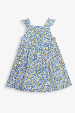 Our Girls Pretty Lemon Bloom Button Front Dress is the perfect style for spring and summer, thanks to lightweight cotton and a beautiful lemon print. Smocking to the back gives it a classic feel, as well as a comfy, stretchy fit while pretty ruffles make it feel extra special. All-over lemon print. Smocking to the back for stretch. Ruffle straps. Pockets to skirt. Button front.