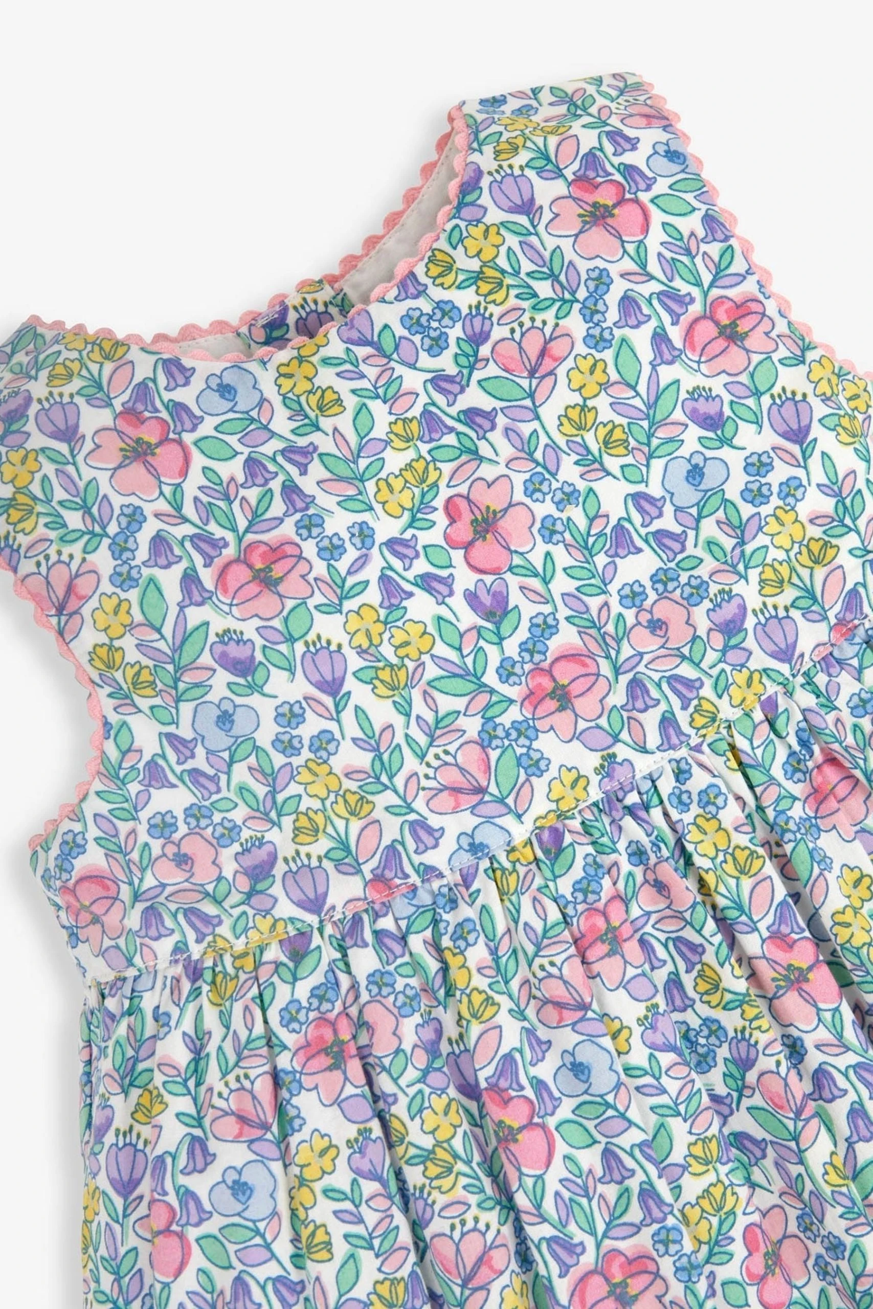 In this Meadow Floral Print Summer Dress, you can go all out for summer. With its adorable floral print featuring meadow flowers against a crisp white backdrop, this dress is sure to delight your little one and make dressing easier. Pair with trainers for a casual feel, or sandals if you want a smarter look. All-over floral print. Gathering to empire seam. Sleeveless. Round neck. Button back opening for easy dressing.