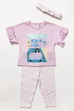 Get your little one ready for summer with this adorable Top, Legging and Headband set! The set from Lily & Jack includes a top that features a fun and playful summer print with cute frill sleeves, adding a touch of charm to any outfit. The leggings and headband complete the look with a matching print. The cotton fabric is comfortable and machine washable, making it perfect for everyday wear. This set is perfect for both casual outings and special occasions.