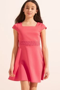 Lipsy Cap Sleeve Lace Trim Scuba Dress