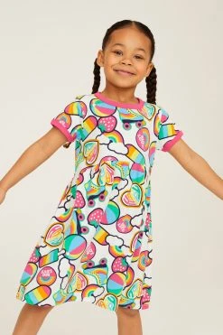 In a bright fun all over print design, this jersey dress from Little Bird by Jools Oliver is the perfect addition to your little ones summer wardrobe. Made from soft breathable cotton, this short sleeve silhouette has a crew neck and a floaty skirt.