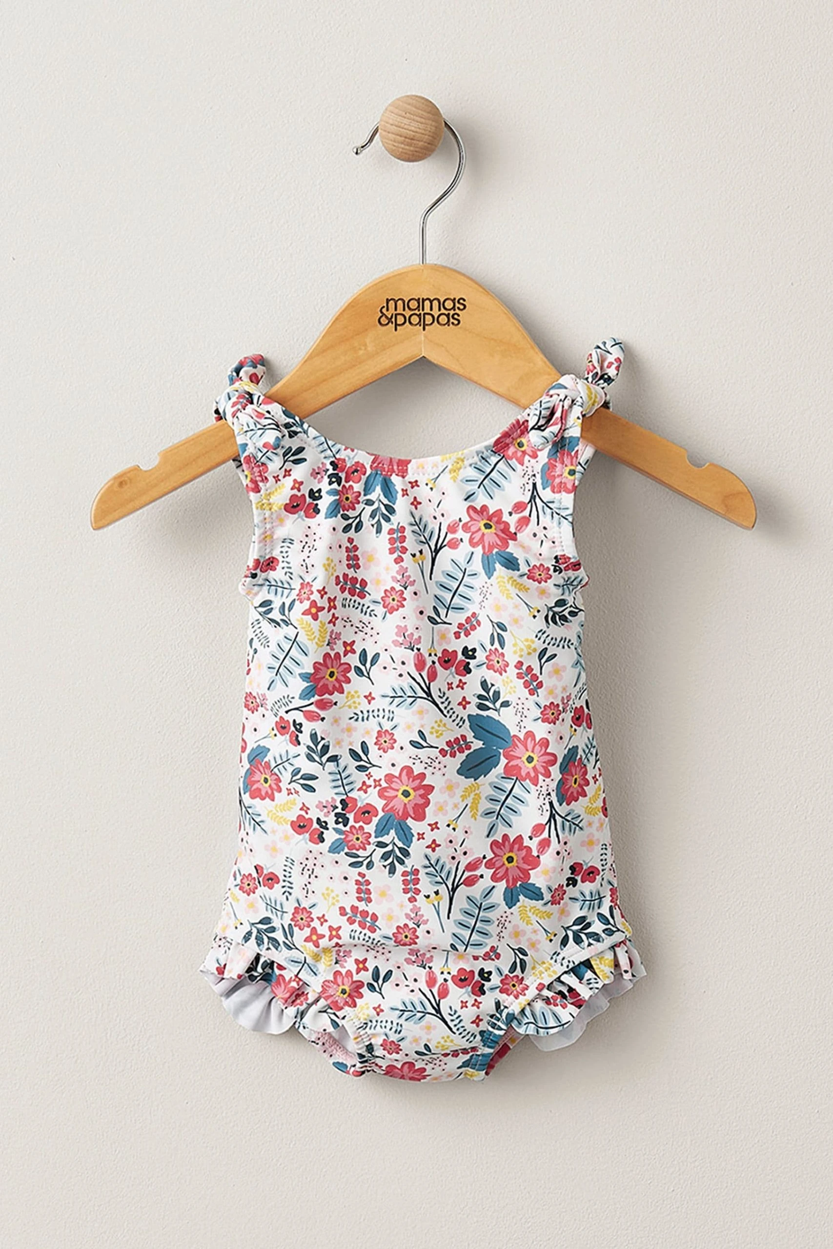 Mamas & Papas Swimwear collection is designed to be comfortable, wearable, easy to care for and playful. With swimwear and swim accessories that are perfect for the pool or beach, for wearing in and out of the water, it’s the perfect wardrobe to help you introduce your little water baby to some splashing fun. A pretty swimsuit that brings together a delicate all over pink and white floral print with pretty bow detail on shoulder straps for a beautiful piece of swimwear. Elasticated leg hole and back fastening allow it to be easily taken on and off, with plenty of room for a nappy or swim nappy. Full Washing Instructions: 30 degree wash, do not bleach, do not tumble dry, do not iron, do not dry clean, wash with similar colours and inside out, rinse in fresh water immediately after use, dry garment away from direct heat and sunlight.