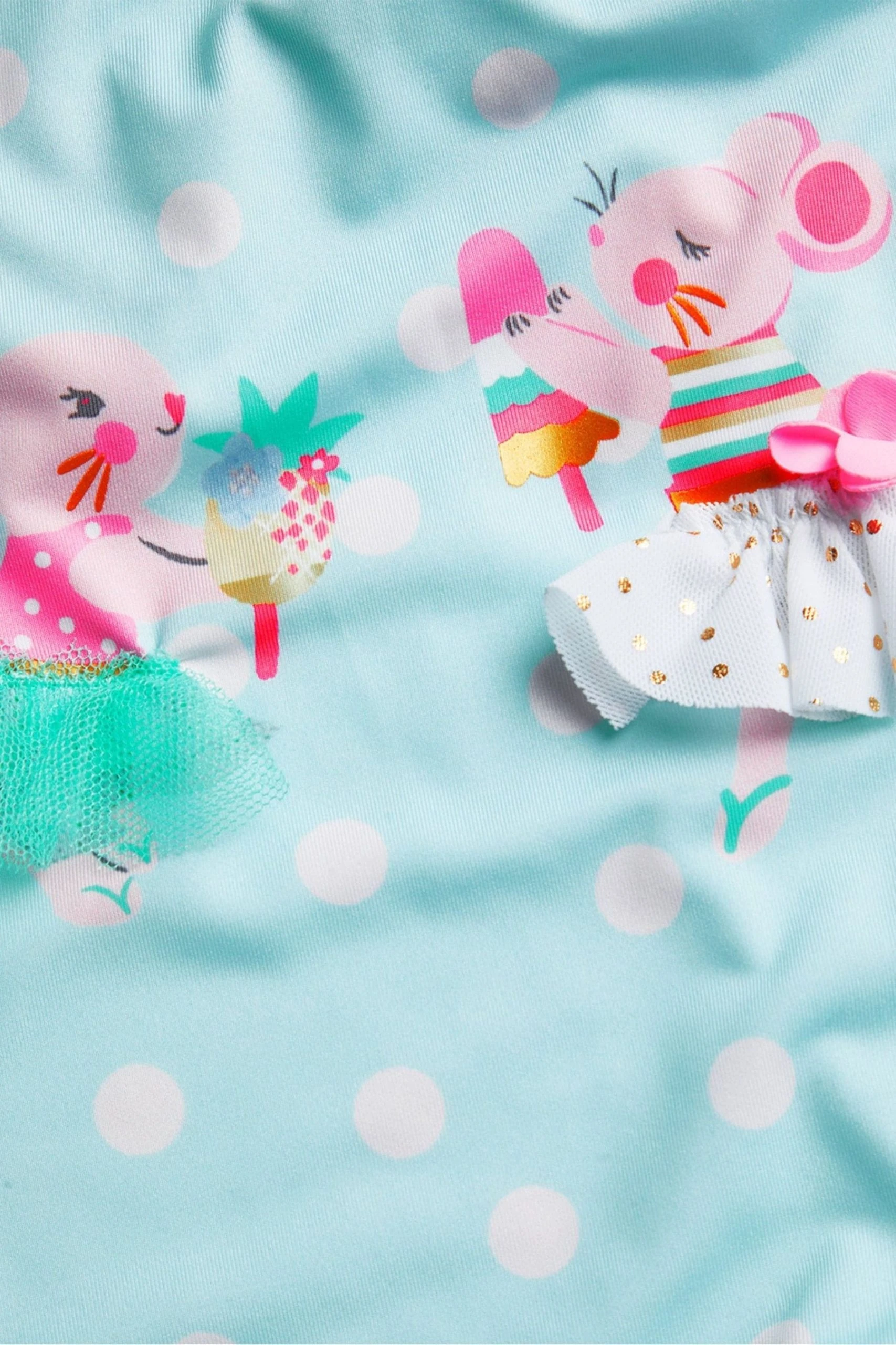 Enjoying sweet treats and ice cream, this swimsuit houses a bunny and mouse duo who will keep your little one’s company as they splash in the pool for the first time. Designed with a stretchy body and brief cut, it features a blue spotty backdrop with decorative appliques to the front. Finished with frill trims for a fluttery touch. Just one of our steps towards a future for sustainable fashion, we introduce S.E.W: our commitment to using more eco-conscious materials in our ranges. This capsule collection is created using fabrics that are both kinder to the planet and have a reduced environmental impact. You’ll see blends of organic and better-sourced cotton, viscose from more responsibly grown forests and recycled polyesters made from post-consumer waste.