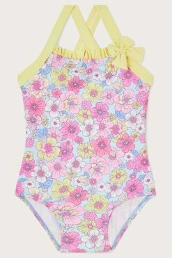 Make their first dip in the pool one to remember with this swimsuit, crafted in stretchy swim fabric. Blooming with retro florals, it features a sunny yellow neckline with pretty ruffles and a little bow to top it off. Just one of our steps towards a future for sustainable fashion, we introduce S.E.W: our commitment to using more eco-conscious materials in our ranges. This capsule collection is created using fabrics that are both kinder to the planet and have a reduced environmental impact. You’ll see blends of organic and better-sourced cotton, viscose from more responsibly grown forests and recycled polyesters made from post-consumer waste.