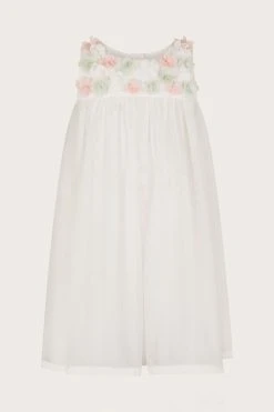 Here to enchant, our Fiona dress is a wonderful option for little ones to style to any special occasion. You’ll find sage and blush coloured flowers that adorn the neckline and straps, whilst the rest of the length is topped in floaty tulle. Simply layer a cardigan over the top for cooler afternoons. Fully-lined.