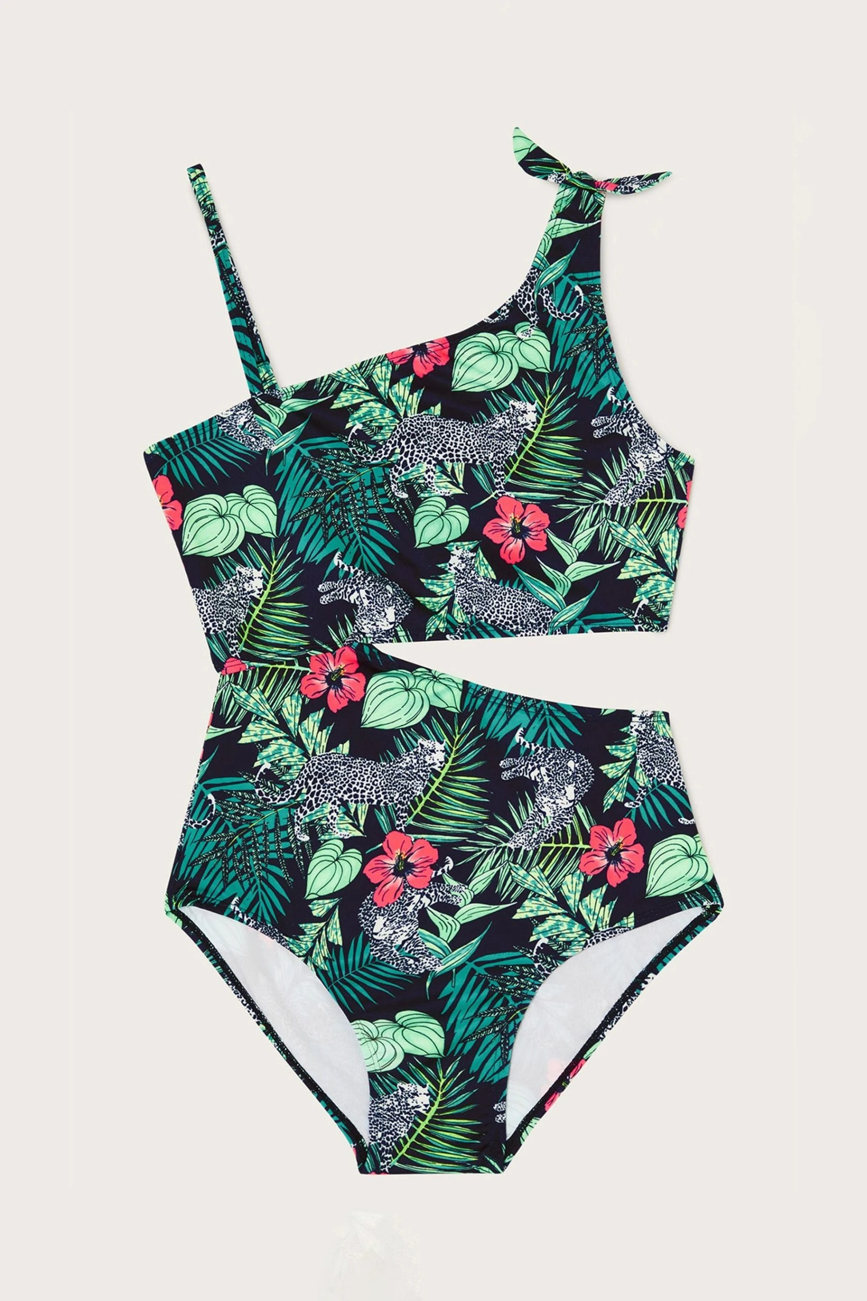 Splashed in a suitable print for the budding explorer, find a bold botanical print over this swimsuit. Perfect for their refreshing dips in-and-out of the sea, the silhouette is truly comfortable with an asymmetric cut-out and adjustable straps. Designed in stretchy swim fabric with recycled polyester, it’s finished with a brief bottom. Just one of our steps towards a future for sustainable fashion, we introduce S.E.W: our commitment to using more eco-conscious materials in our ranges. This capsule collection is created using fabrics that are both kinder to the planet and have a reduced environmental impact. You’ll see blends of organic and better-sourced cotton, viscose from more responsibly grown forests and recycled polyesters made from post-consumer waste.