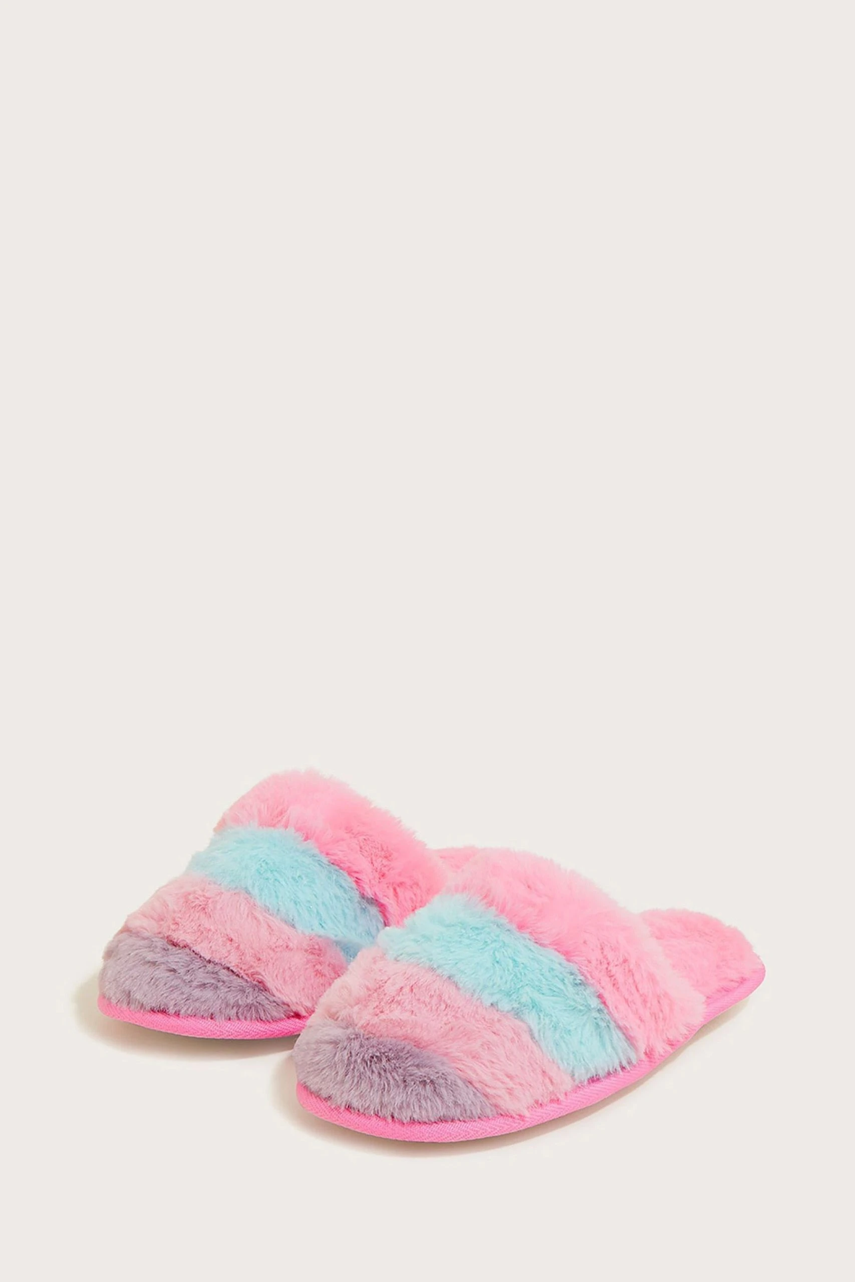 Stripes of colour sit over the strap on these mule slippers, infusing a fun touch to their nighttime look. They’re designed in faux fur with cushioned soles, a recipe for true comfort.