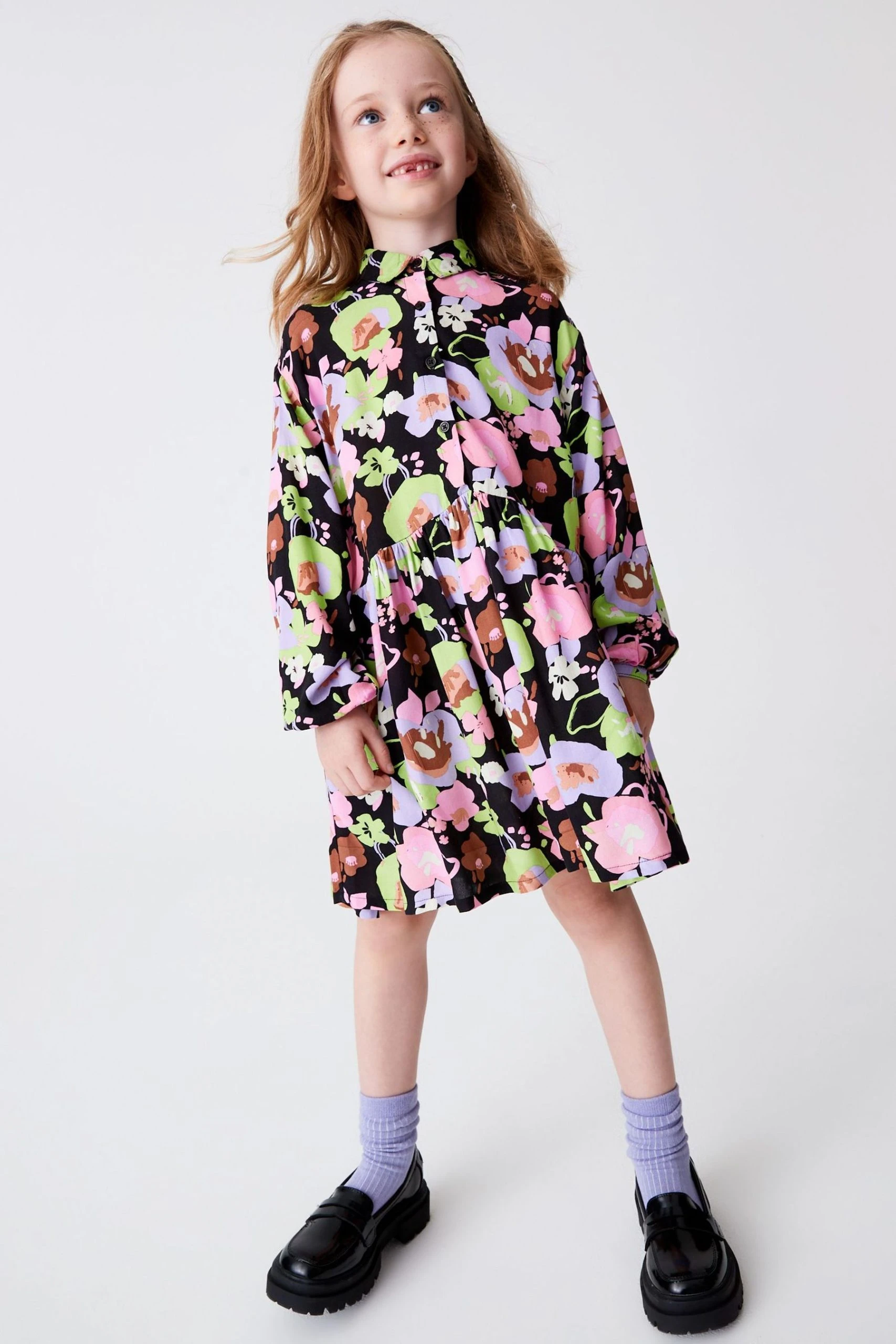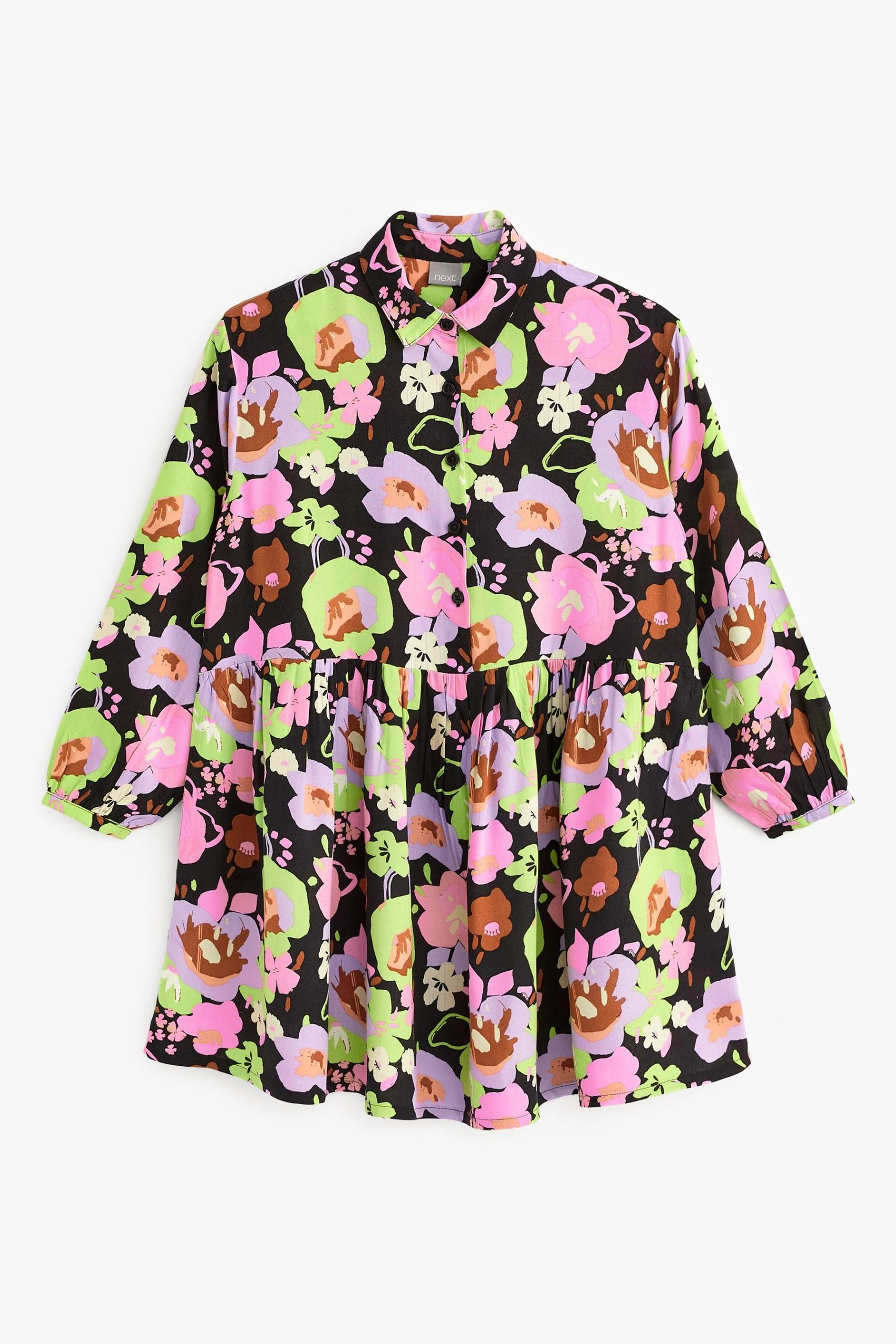 Next Black Button Through Floral Tierred Dress (3-16yrs)