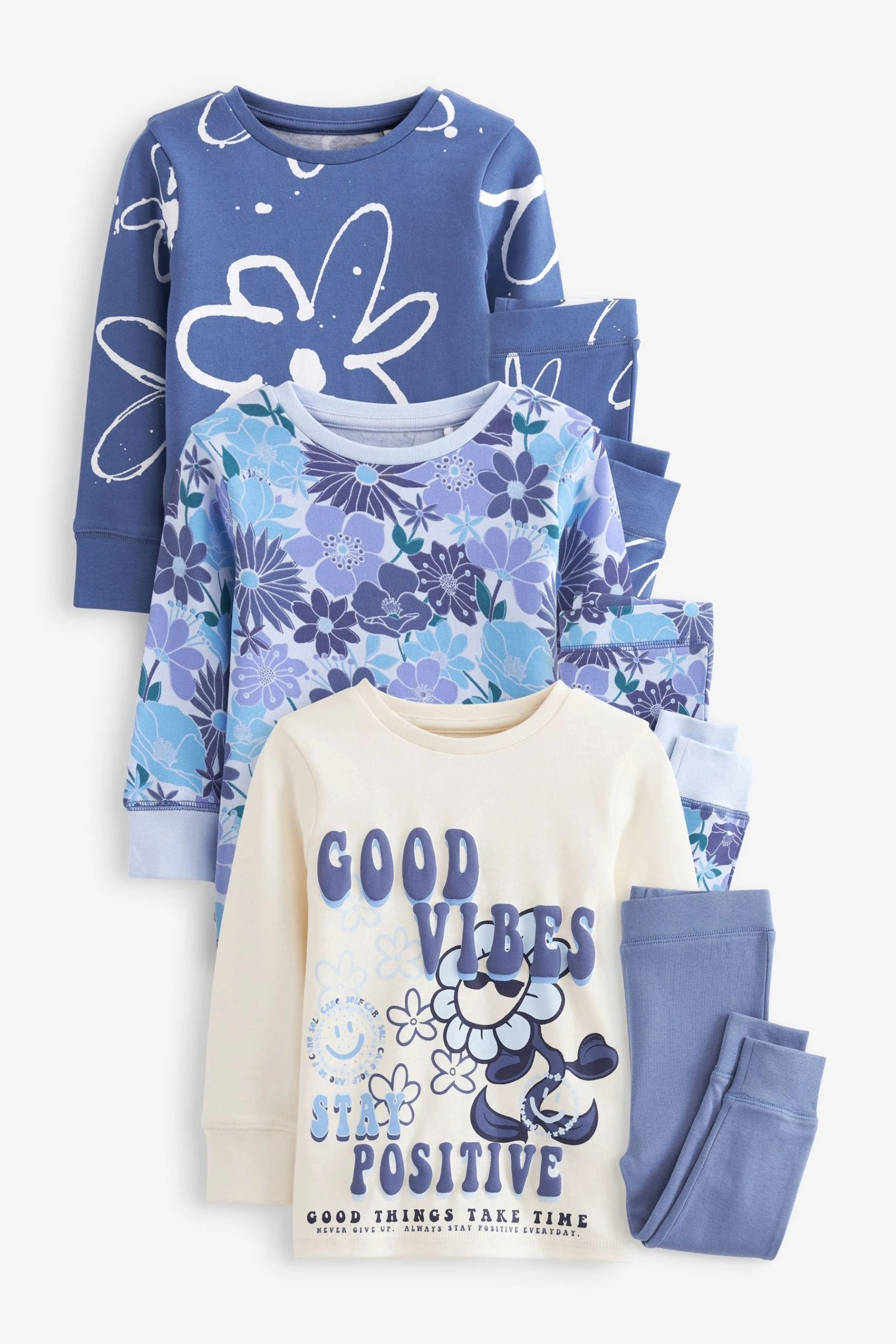 Next Blue Floral Snuggle Pyjamas 3 Pack (9mths-16yrs)