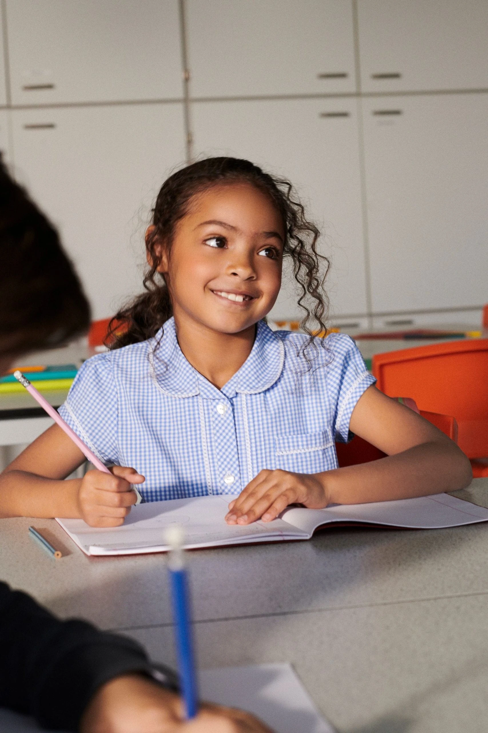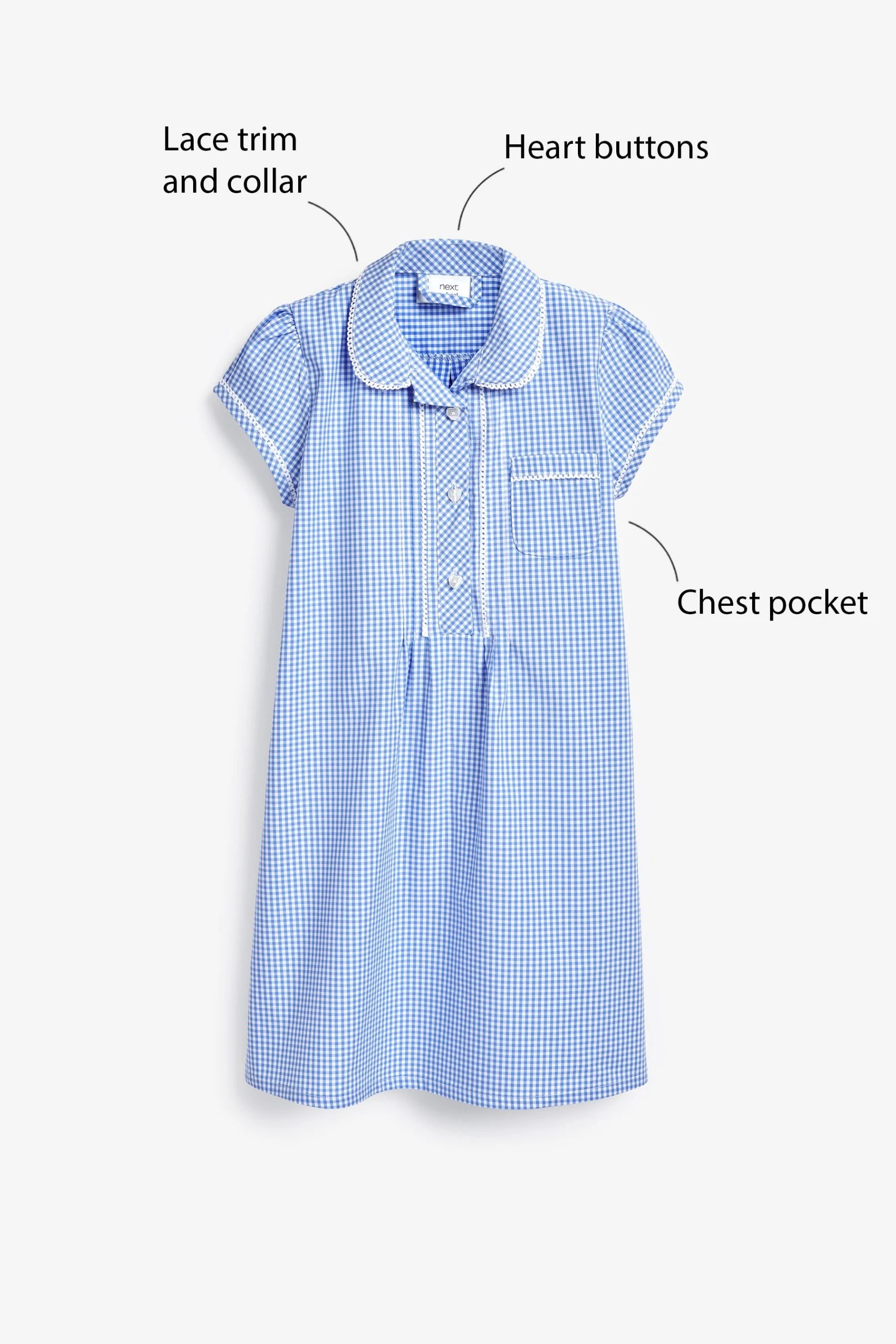 Next Cotton Rich Button Front Lace Gingham School Dress (3-14yrs)