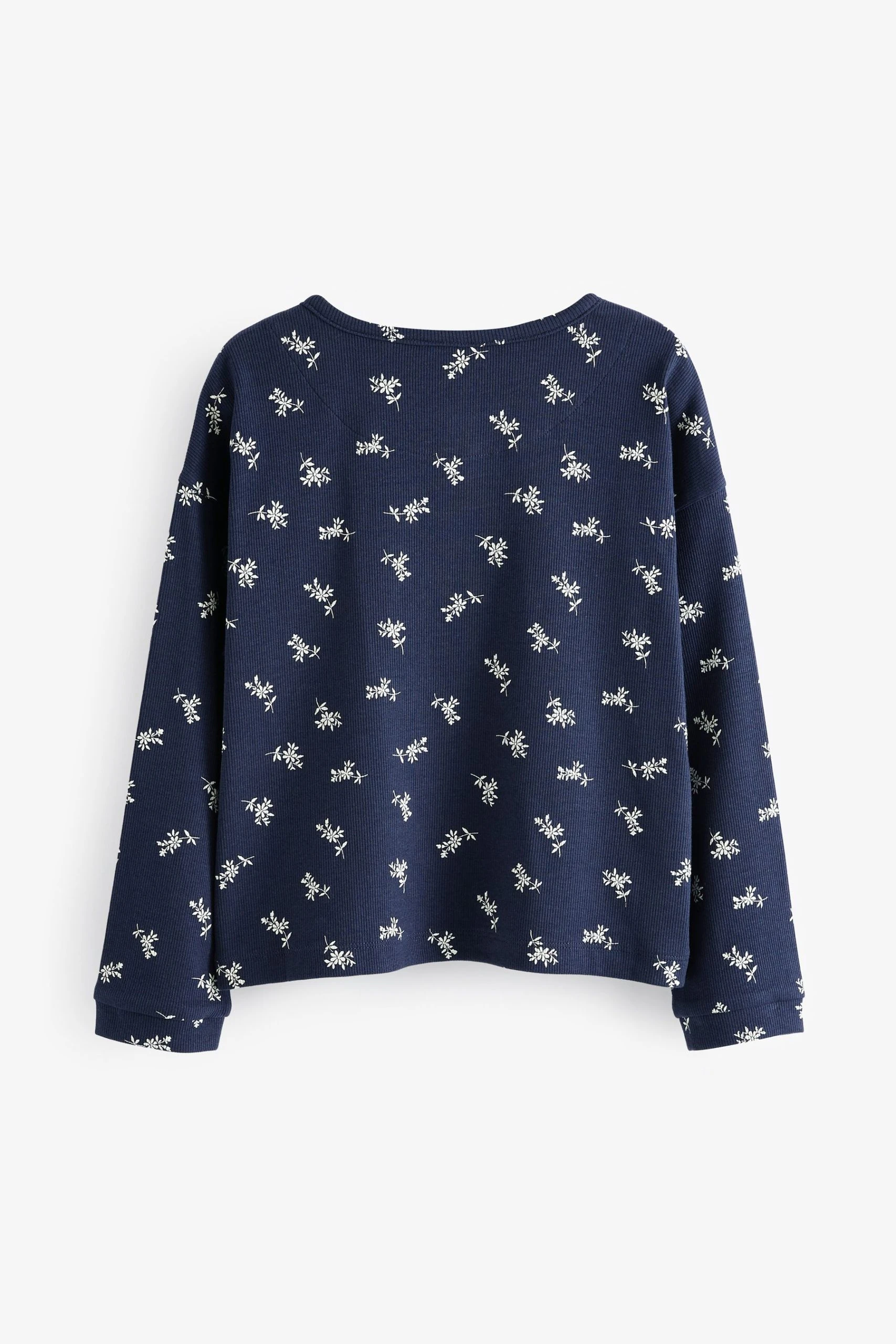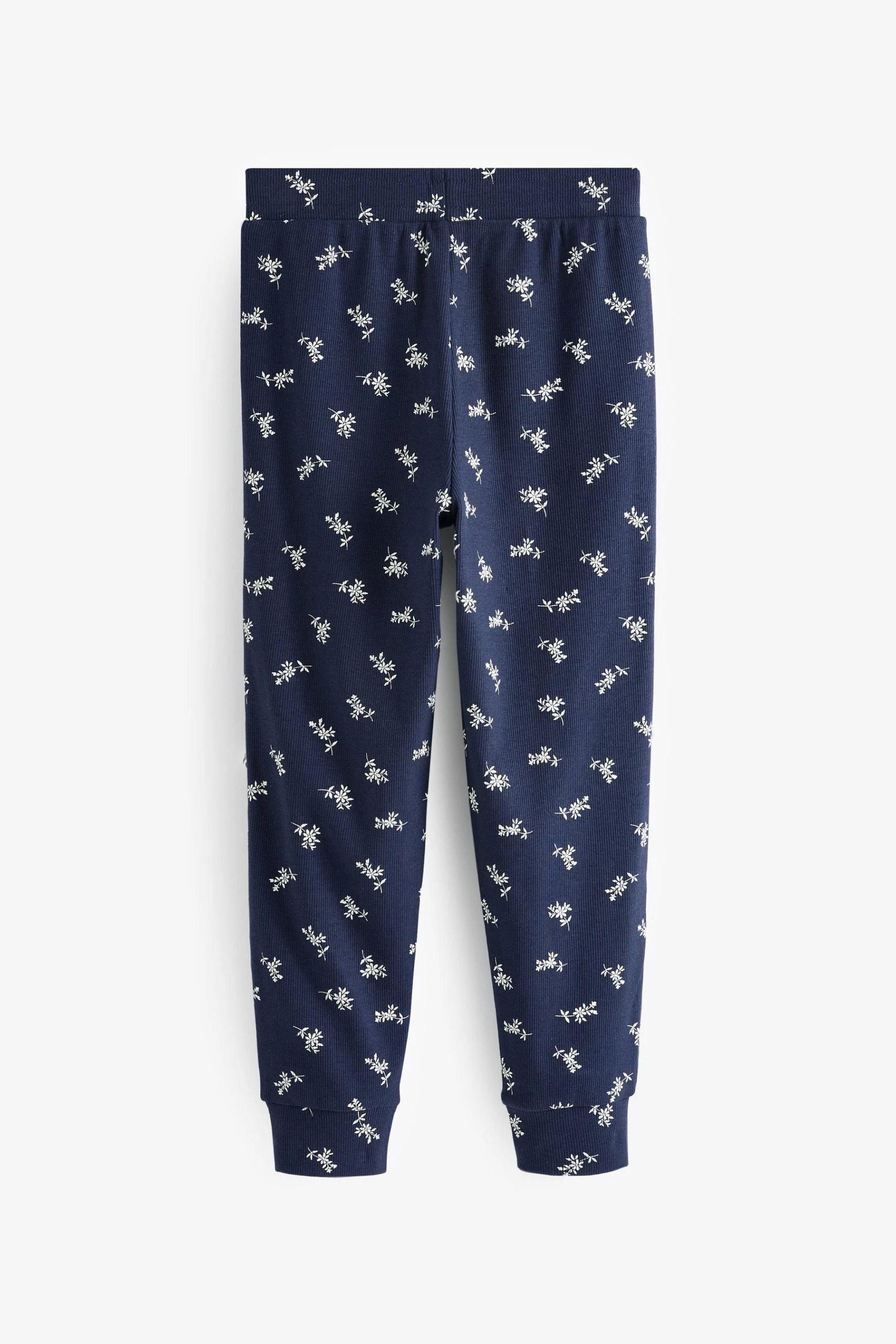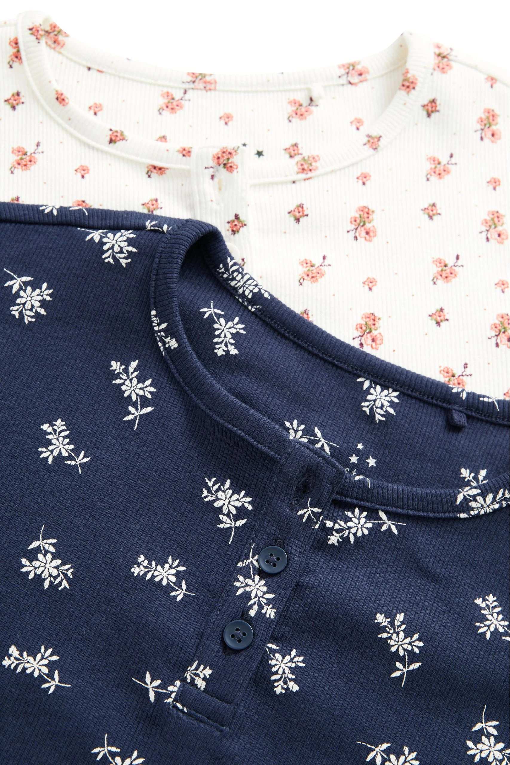 Pack of 2 Pyjama set. Allover ditsy floral print. Pointelle fabric. Long sleeve T-Shirt. Crew neck with button front detail . Joggers with elasticated waist and cuffed ankle.