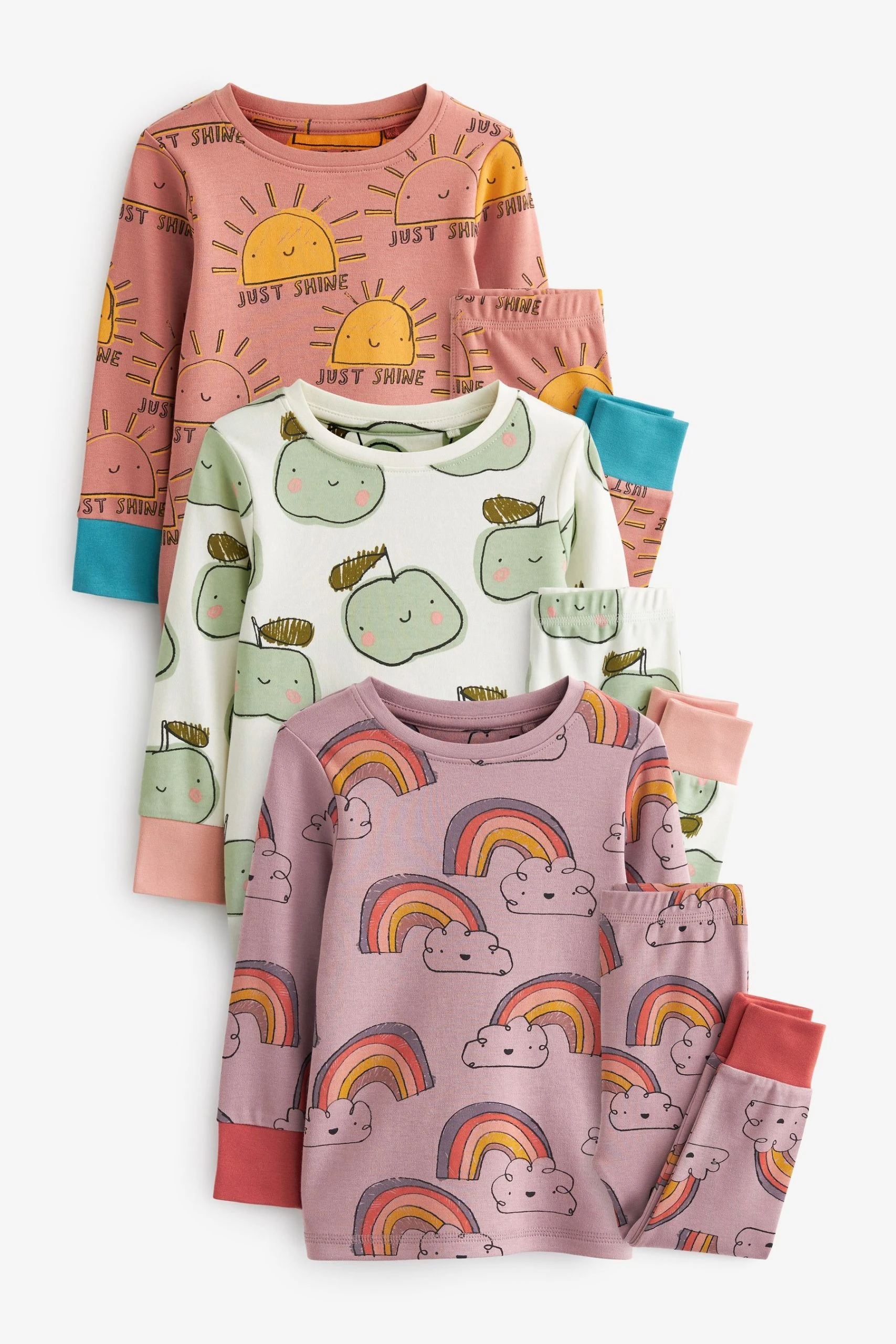 Next Cream/Purple Character Pyjamas 3 Pack (9mths-8yrs)