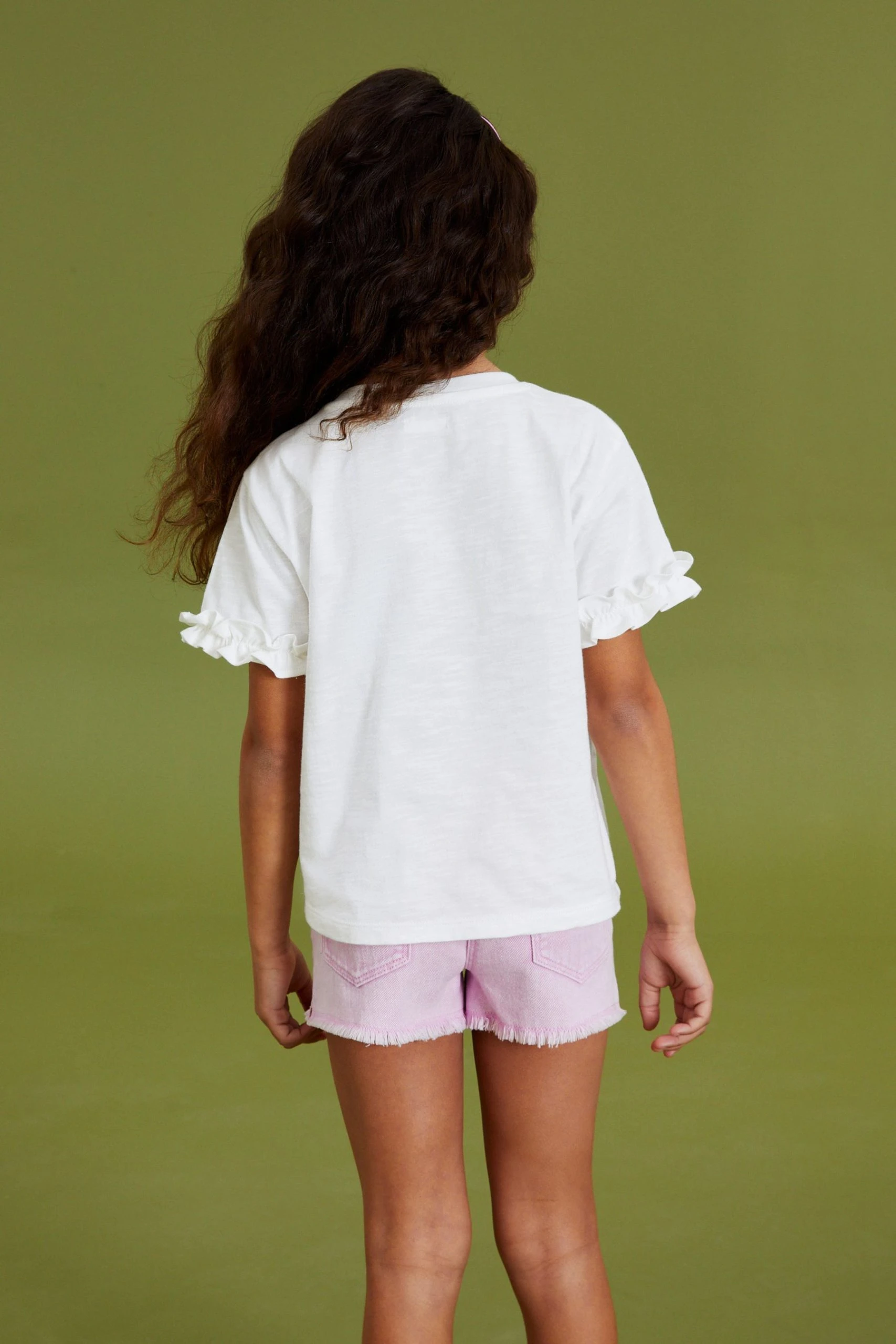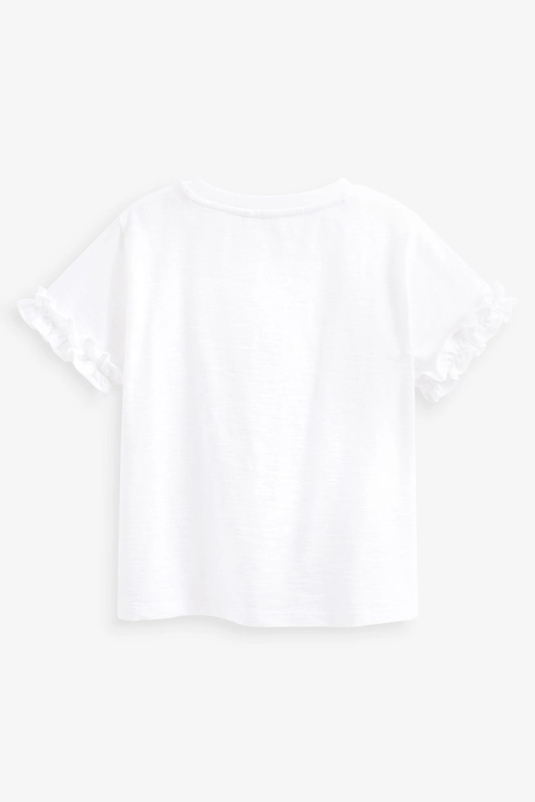 Next Ecru White Sequin Unicorn Frill Sleeve T-Shirt (3-16yrs)
