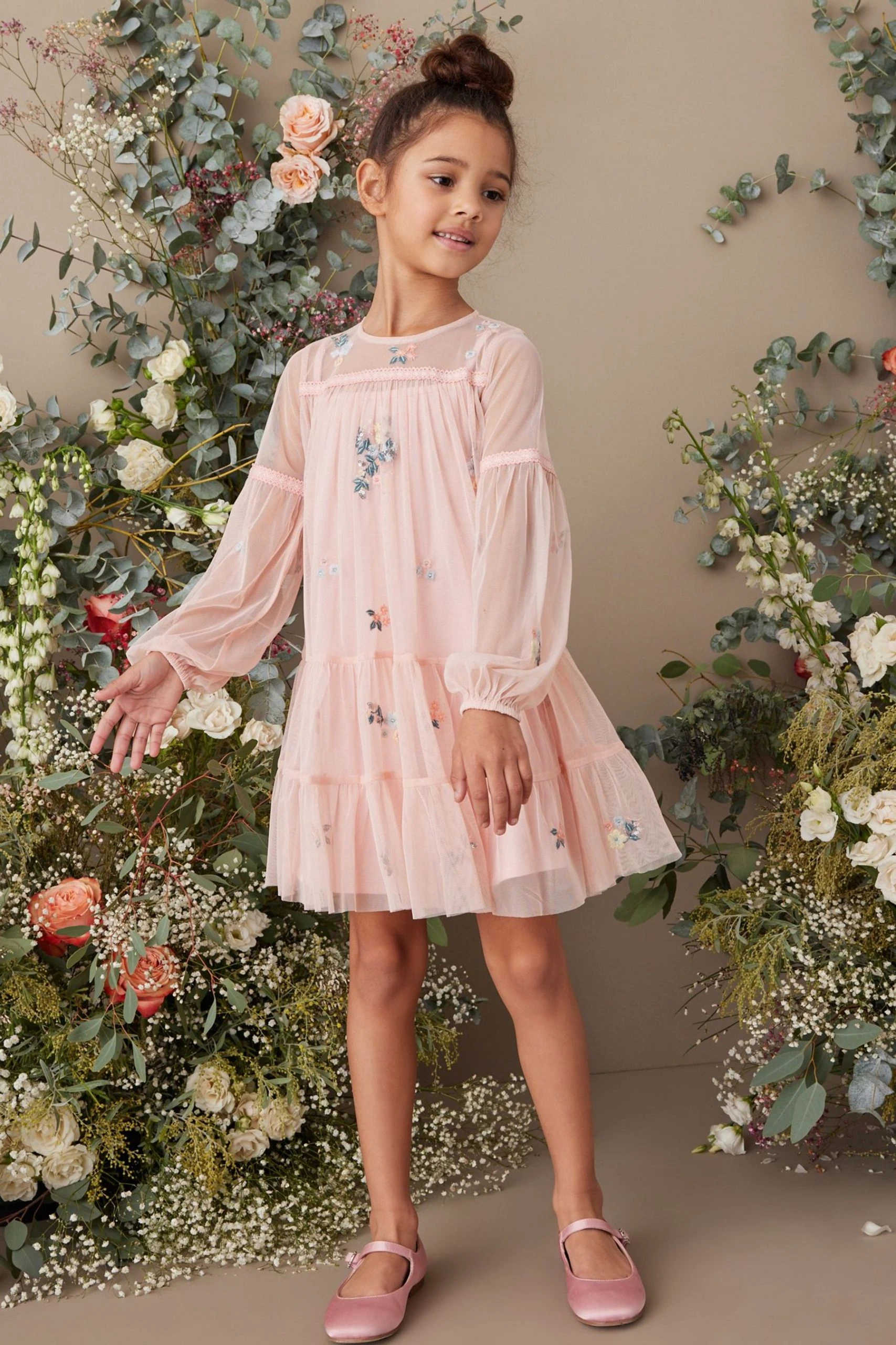 Next Embroidered Occasion Mesh Dress (3-16yrs)