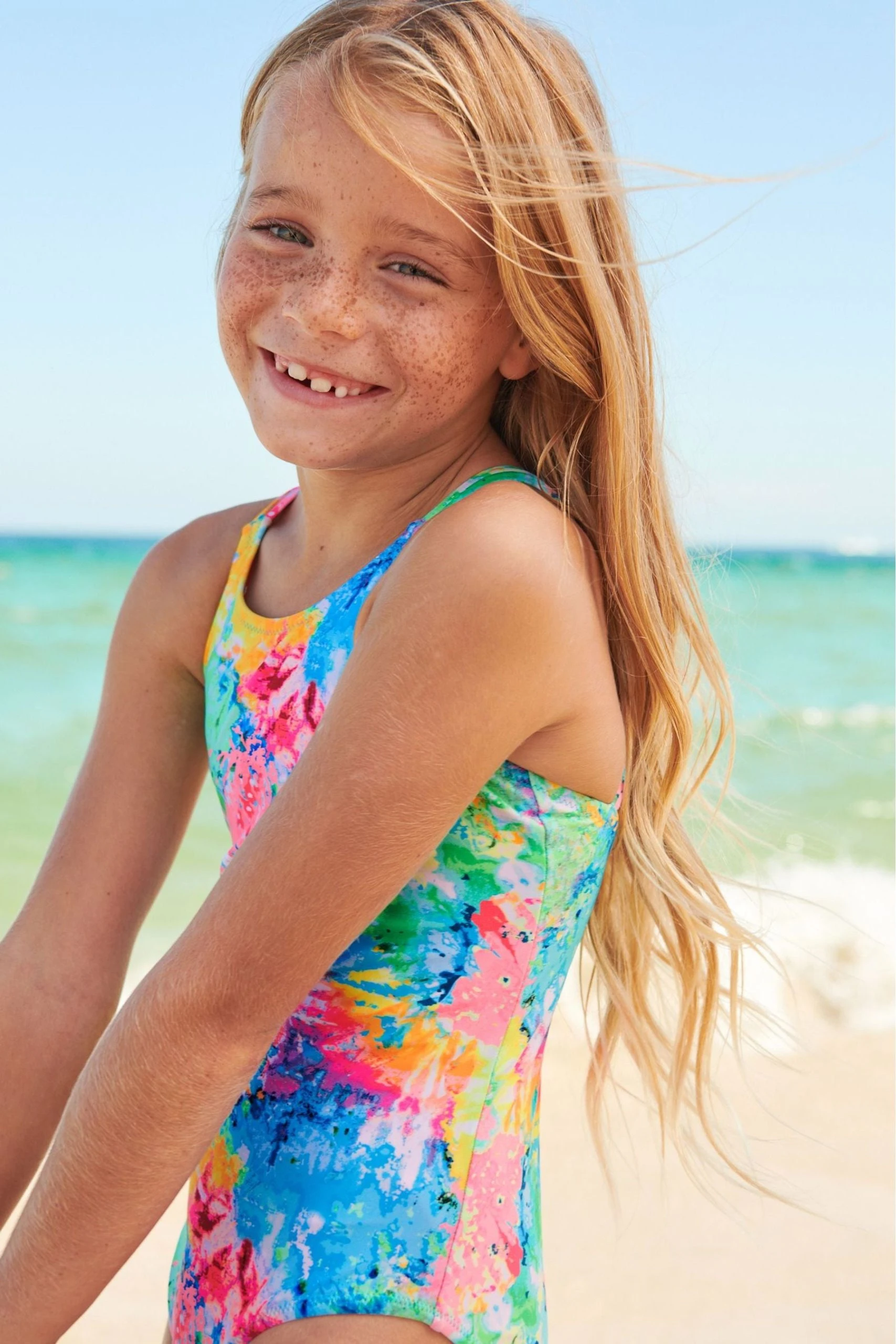 Take us to the beach! This brightly coloured swimsuit from Next is a holiday essential for so many reasons. Firstly it’s in this season’s top trend – tie dye. In a gorgeous vibrant splash of colours, this swimsuit is lightweight, soft, stretchy and quick-drying. Made with the perfect mix of hard-wearing fibres, it’s ready for repeat wear. With cross-back detail and contrast lining, beach, pool or a back garden – we’re ready for your sunshine.