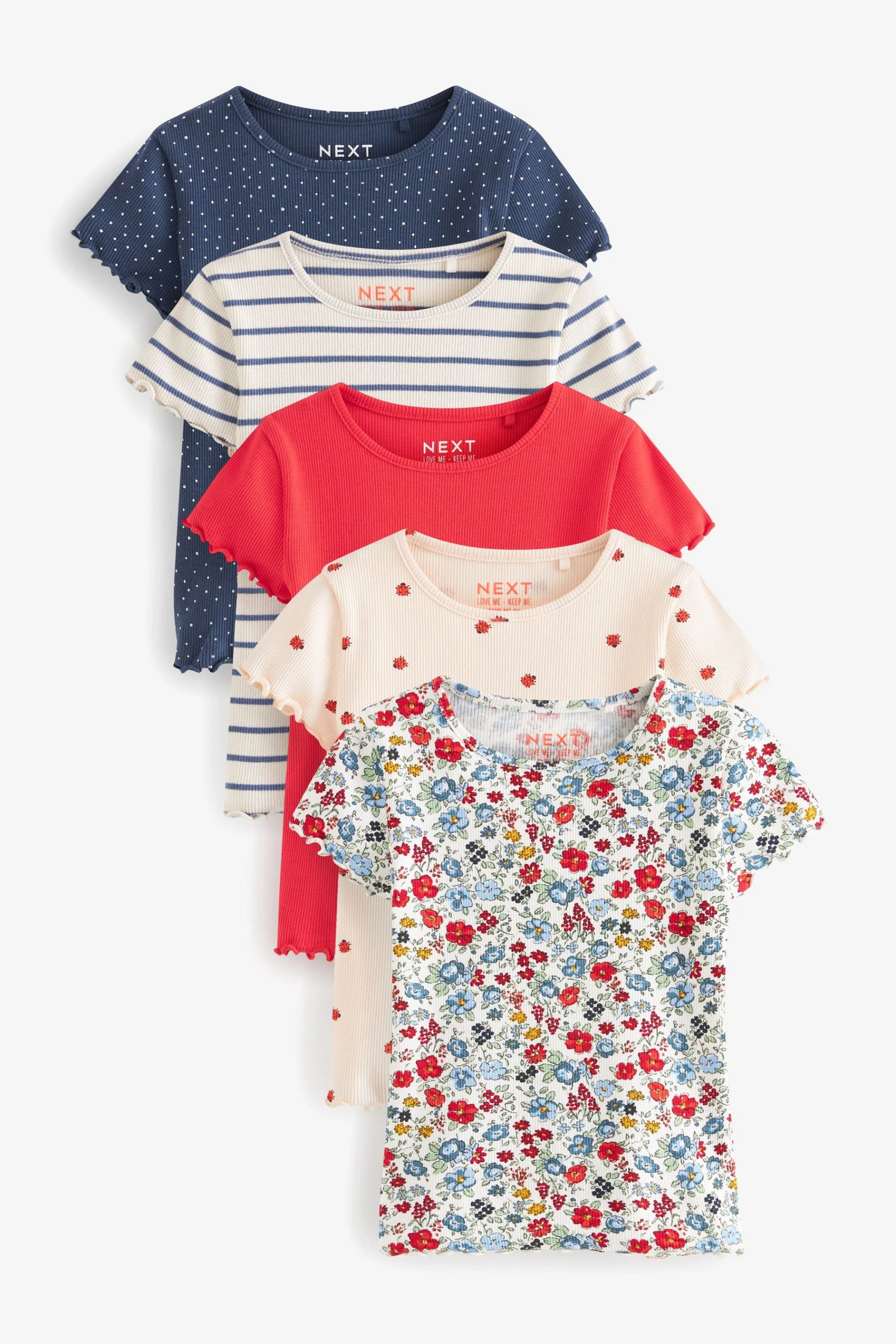 Next Red/Blue Short Sleeve Rib T-Shirts 5 Pack (3mths-7yrs)
