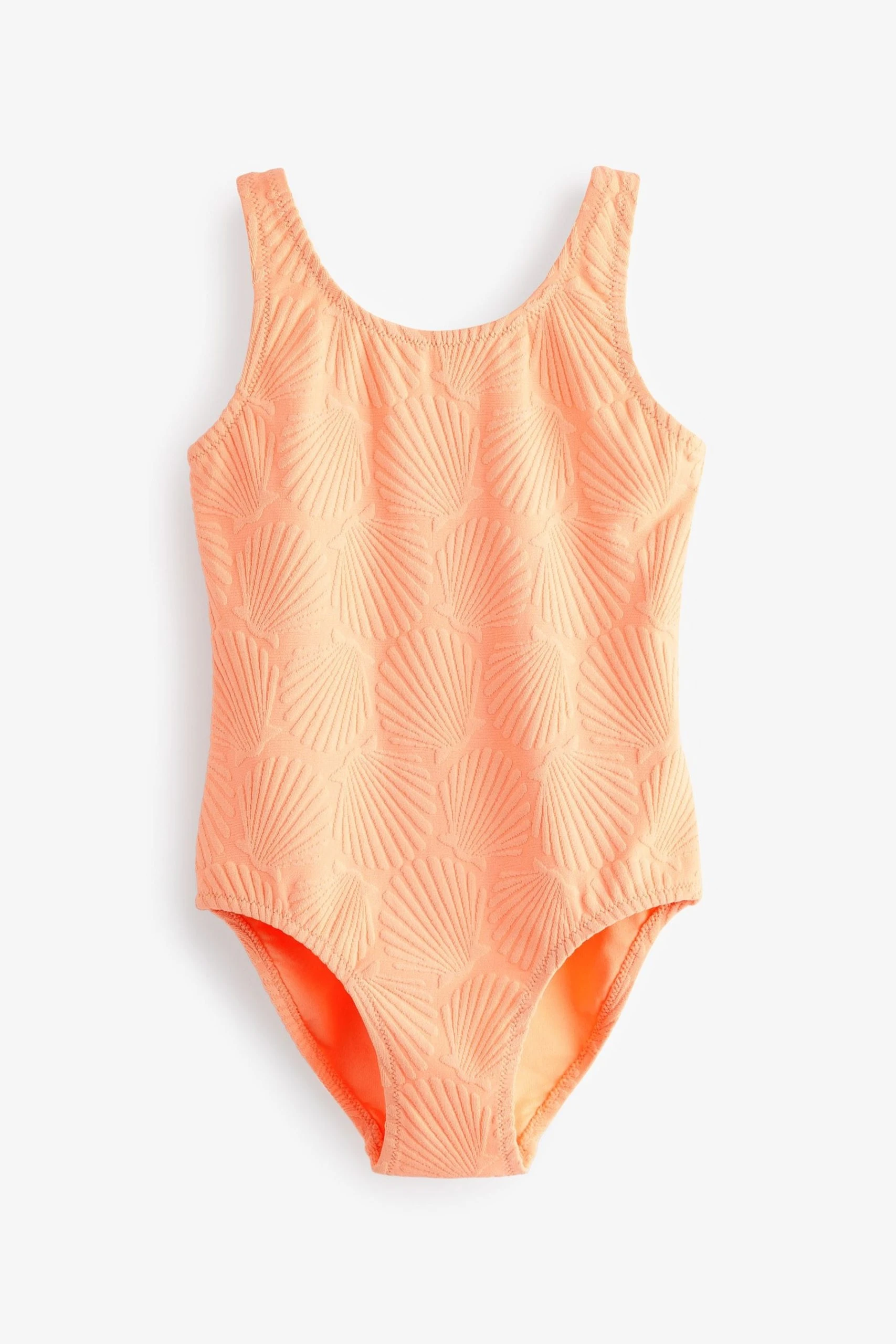 This lovely swimsuit is made from a stretchy, crinkled fabric that is fully lined. Perfect for those who prefer something plainer. Stretchy and crinkled fabric. Textured. Fully lined. Round neckline. Sleeveless. Cross strap pattern at back.