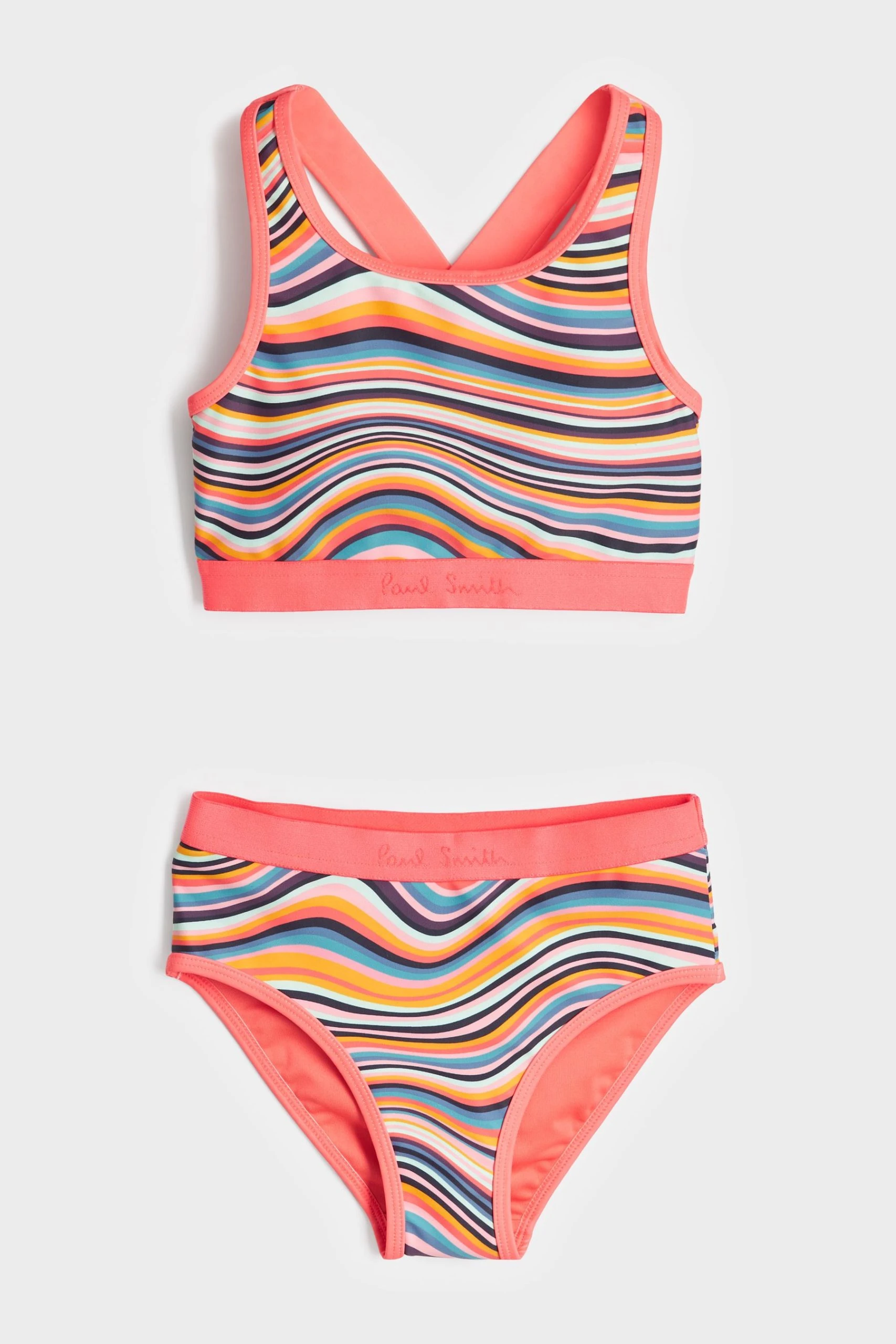 Made from a quick-drying fabric, this printed Two-piece bikini set from Paul Smith Junior is designed with a racer back and scoop neck. Featuring an all-over print, the fabric is soft, stretchy and elasticated for comfort. This Paul Smith bikini set comes with a matching bag that has a waterproof lining making it perfect for the beach and pool. Racerback. Soft and stretchy fabric. Signature print. Matching bag.