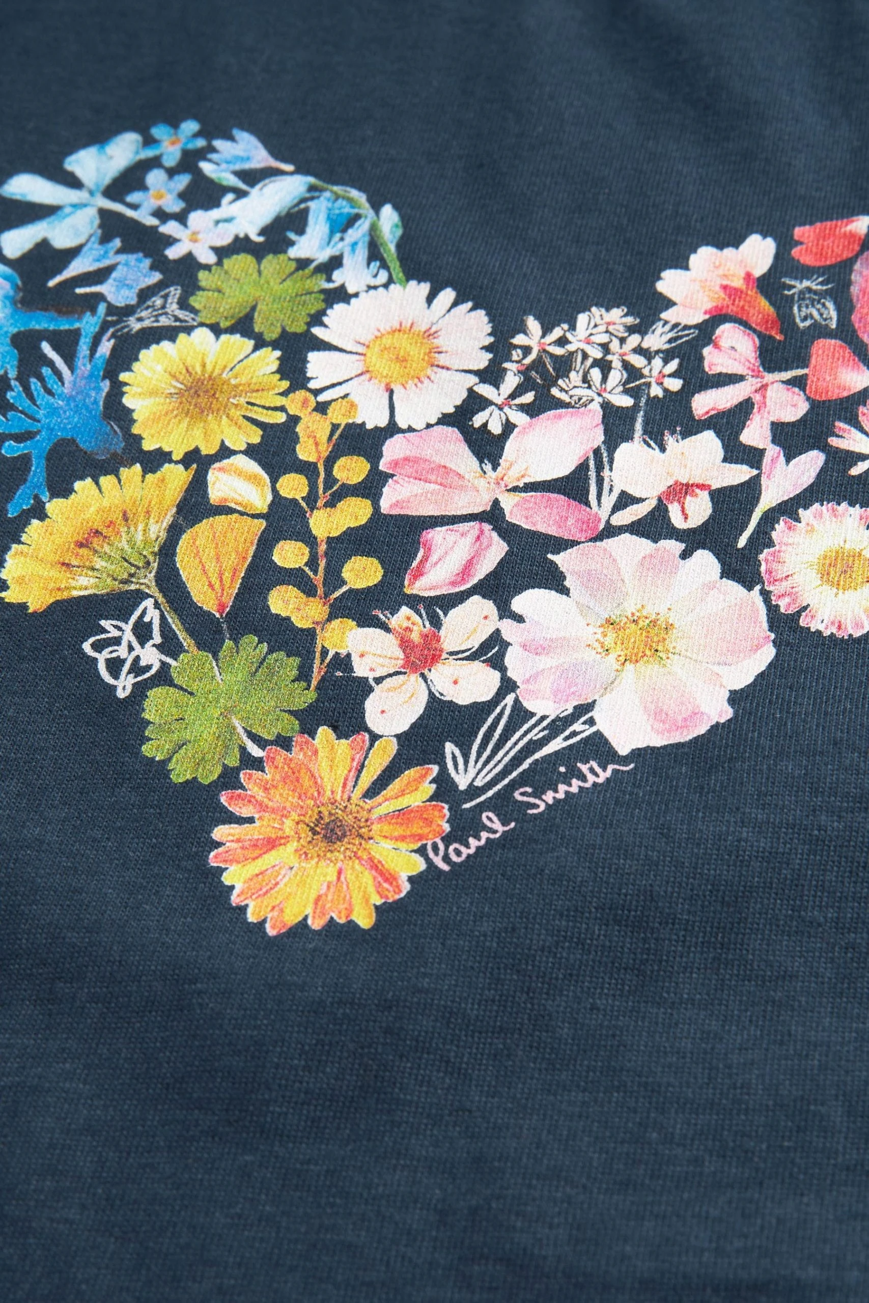 Made from premium cotton fabric, this navy crew neck T-Shirt from Paul Smith Junior has been designed in a regular fit for comfort. Featuring a pretty floral heart graphic on the front. 100% Cotton. Regular fit. Crew neck style. Floral heart graphic.