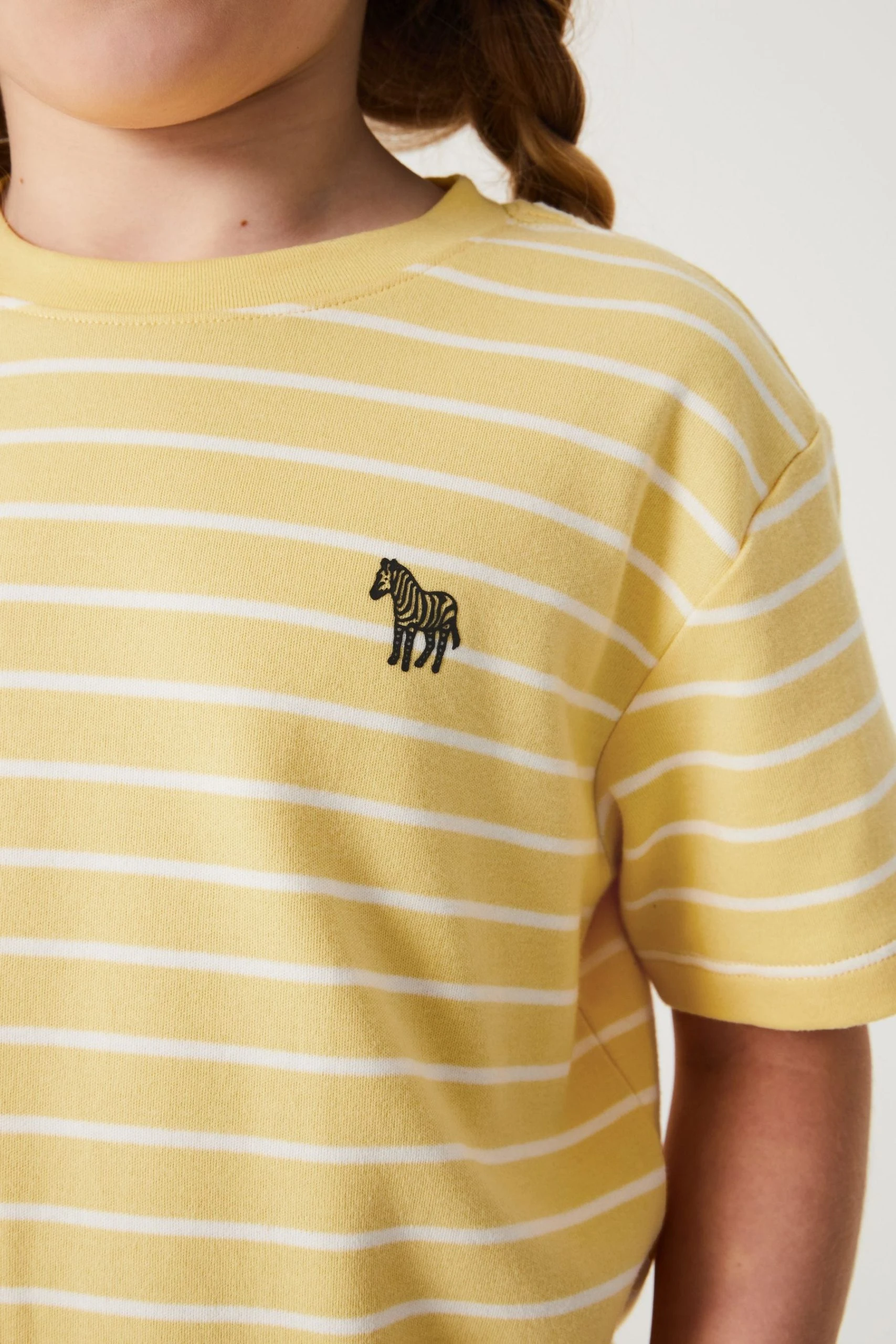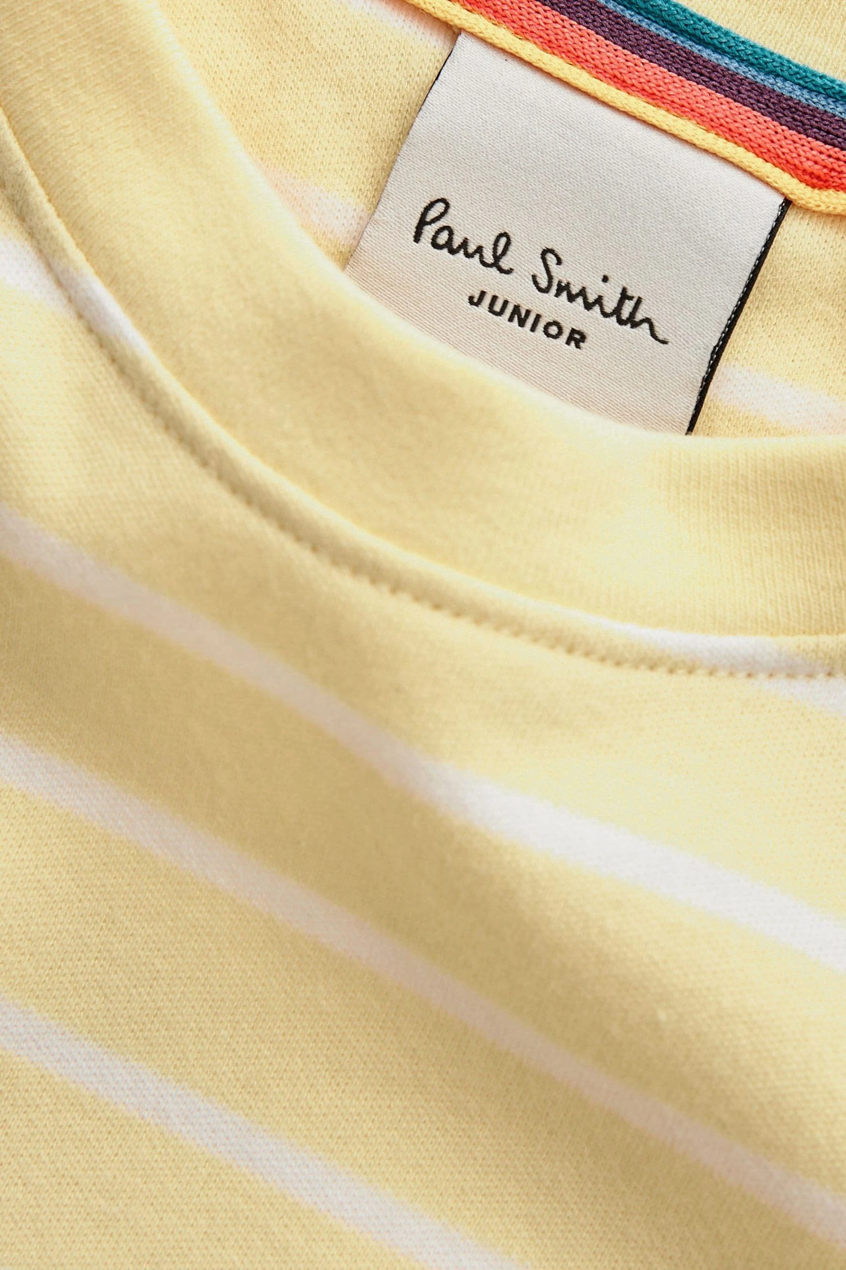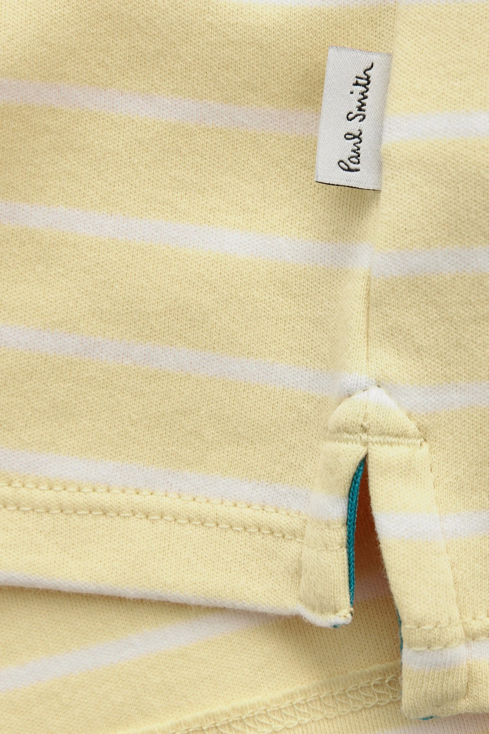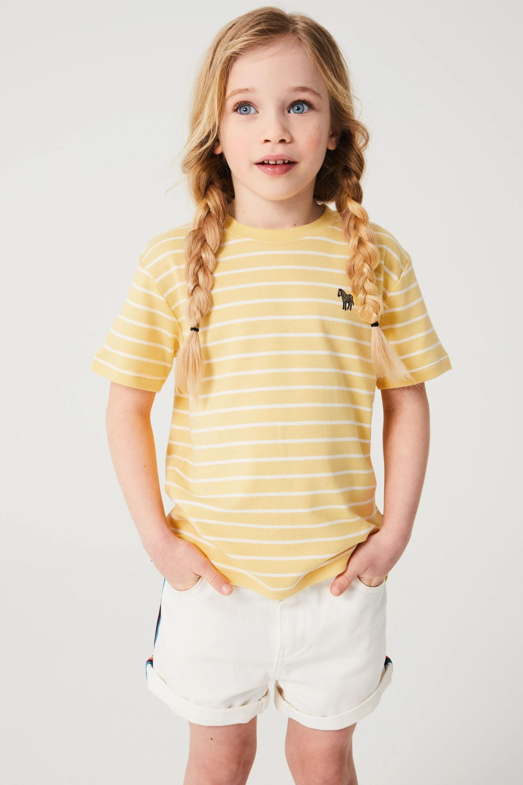Made from premium cotton fabric, this yellow crew neck T-Shirt from Paul Smith Junior features an all-over stylish Breton stripe. Designed in a regular fit for comfort it features the classic Paul Smith Zebra logo at the chest. Breton stripe. 100% cotton. Regular fit. Classic Zebra chest print.