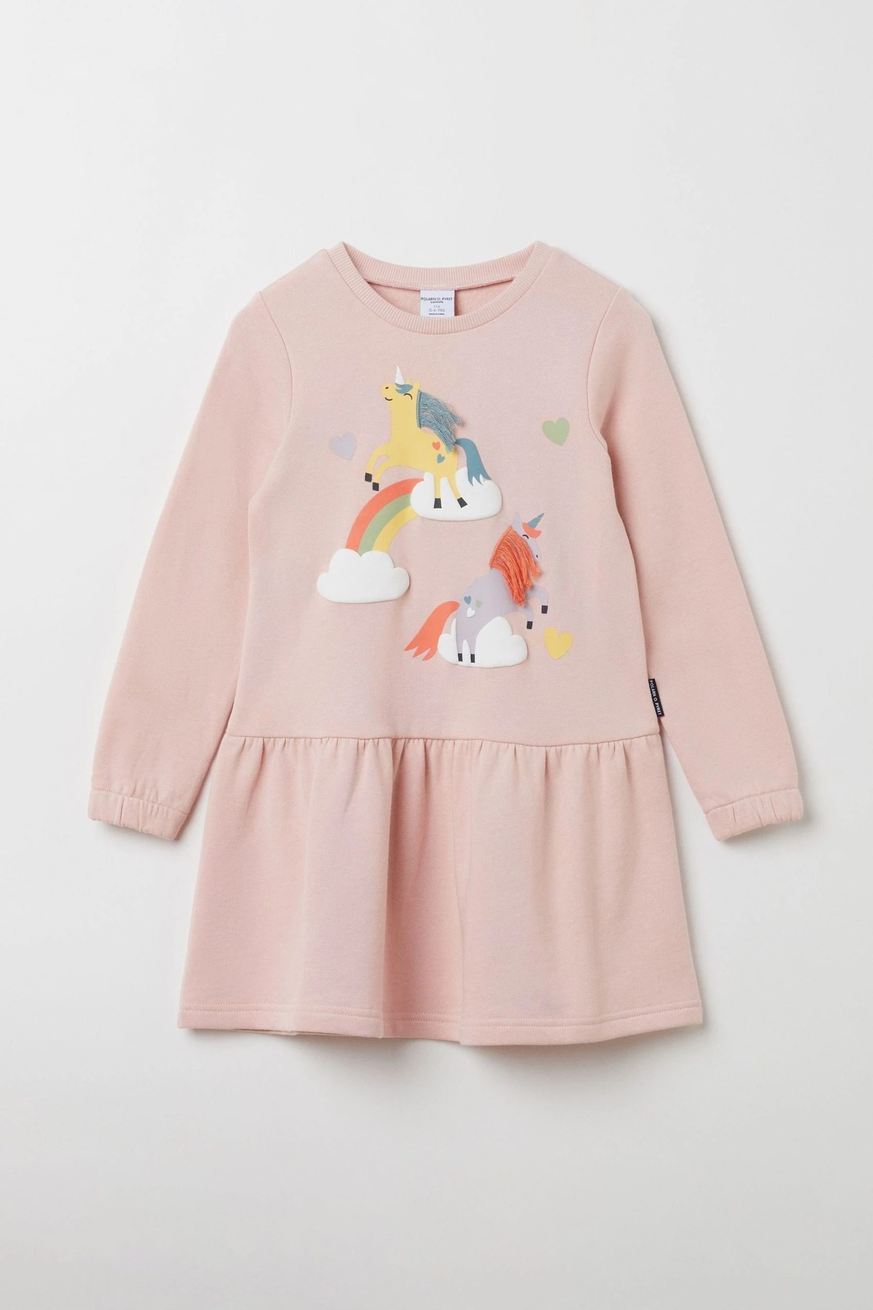 The perfect combination of comfort and style this fun unicorn print sweatshirt dress is sure to be their new favorite. Made from brushed back organic cotton for a soft and comfy feel it has cosy long sleeves with soft ribbed neckline and cuffs. Age 1-2yrs has poppers on one shoulder for easier dressing.Certified by Ecocert Greenlife/152006/1167075/1.