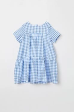 Sure to be a summer favourite this gingham check dress is made in woven organic cotton fabric which is lightweight and breathable making it perfect for warm weather. The pretty style boasts a tiered skirt with short sleeves and back button fastening for easy fitting.