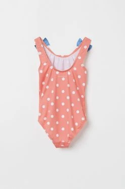 On the beach or in the back garden she’ll love wearing this polka dot print swimsuit from Polarn O. Pyret. In soft quick-drying fabric it has a round neckline and frilled shoulder straps for a pretty finish. Coordinates with other swimwear and hats in the Polarn O. Pyret collection.