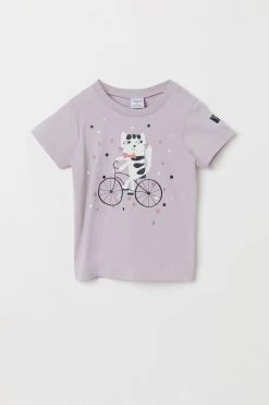 Update their everyday wardrobe with this playful printed t-shirt from Polarn O. Pyret. Designed in pure organic cotton for a super-soft and comfortable finish, this tee features a fun print of a cat riding on a bike that’s sure to be a favourite. Sizes 1-2 years feature poppers on one shoulder for fuss-free dressing.
