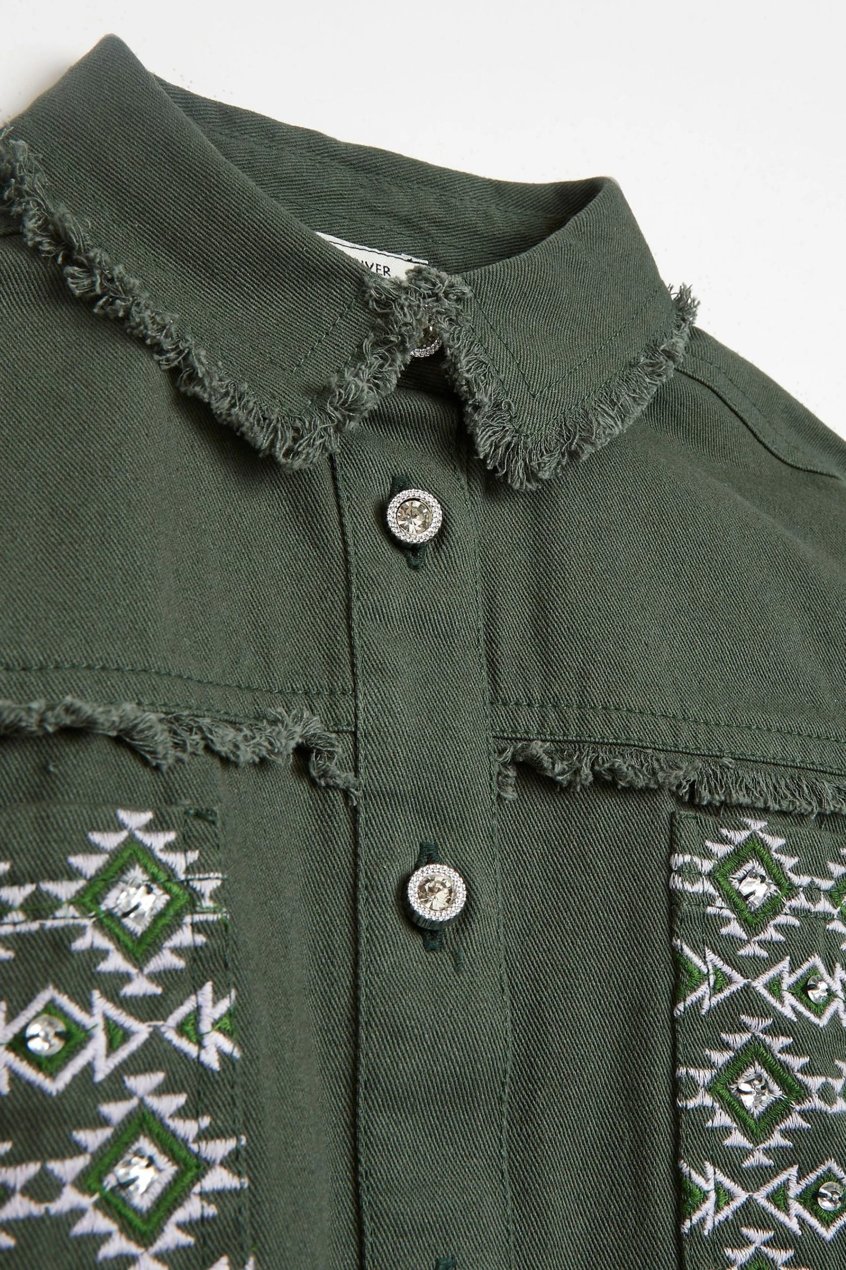 River Island Oversized Green Embroidered Shirt