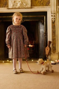 Trotters London Red Floral Robin Smocked Cotton Dress