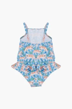 Trotters London Little Blue Tiger Peplum Swimsuit