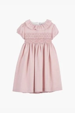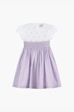 Trotters London Purple Rose Hand Smocked Cotton Dress