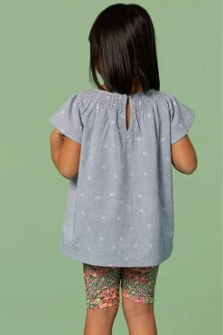 White Stuff Blue Chambray Frill Top