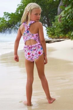 Angel & Rocket Pink Frill Shoulder Swimsuit