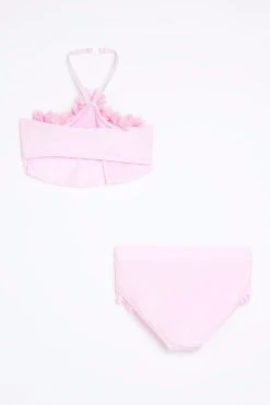 River Island Girls Pink 3D Flower Halter Bikini